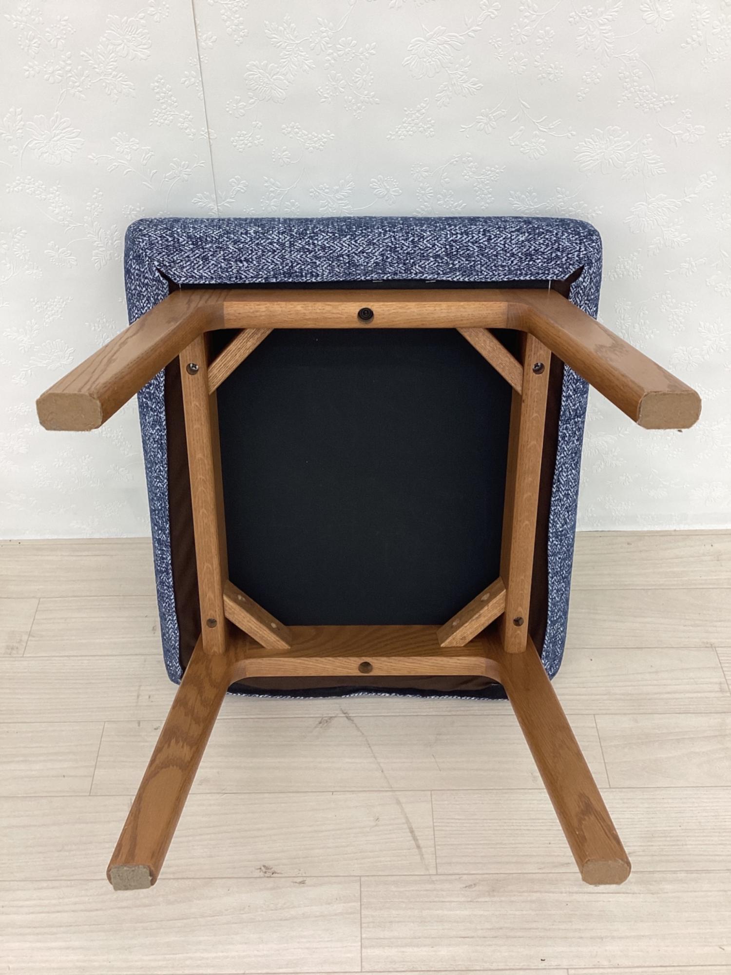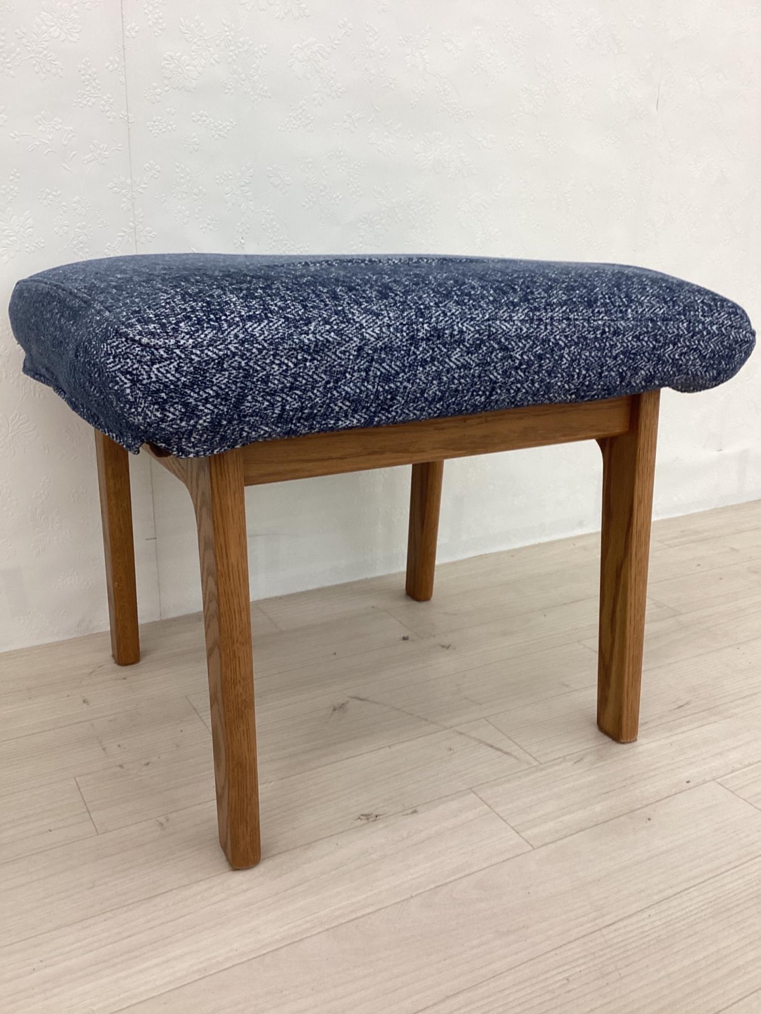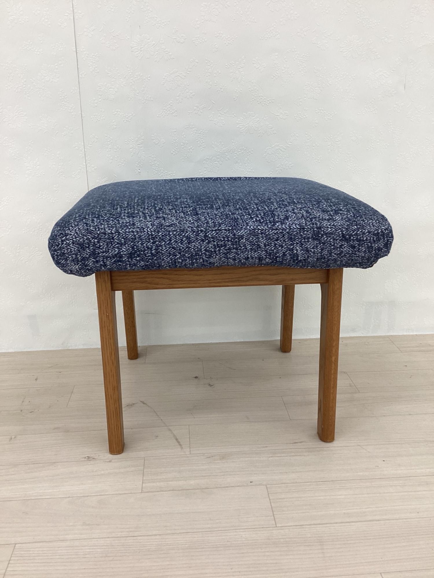 LIVING HOUSE (リビングハウス) スツール ブルー×ブラウン カバーリング ファブリック×オーク材 MOCOA