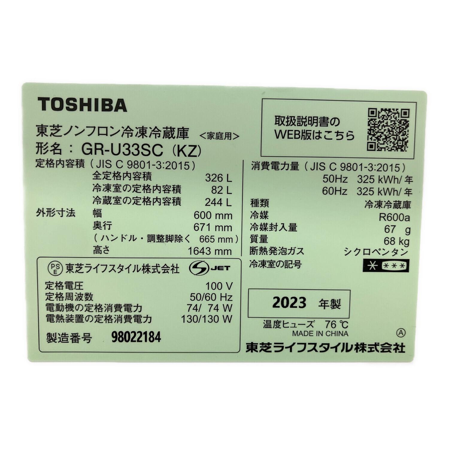 TOSHIBA (トウシバ) 3ドア冷蔵庫 GR-U33SC 2023年製 自動製氷機能 326L