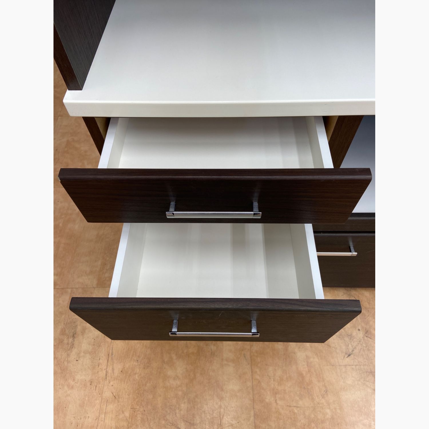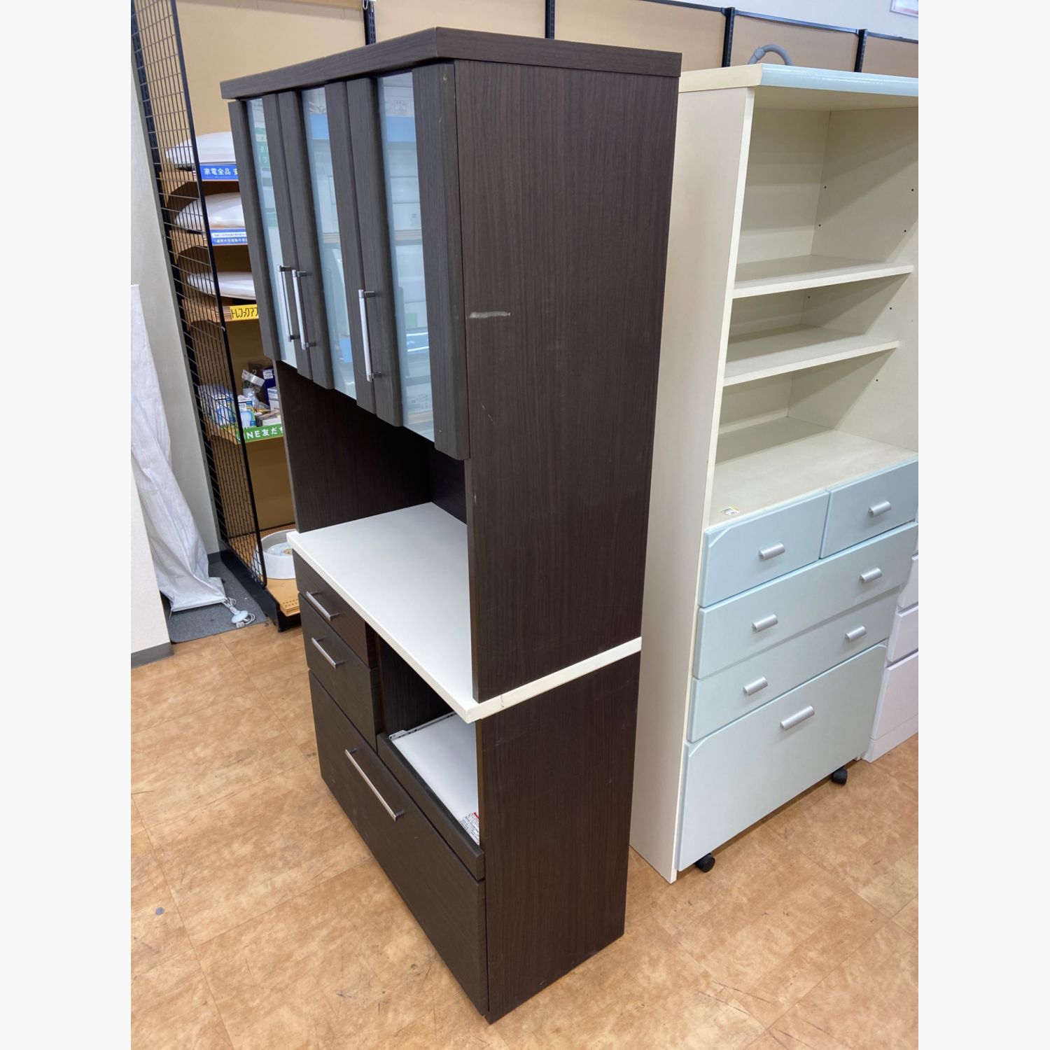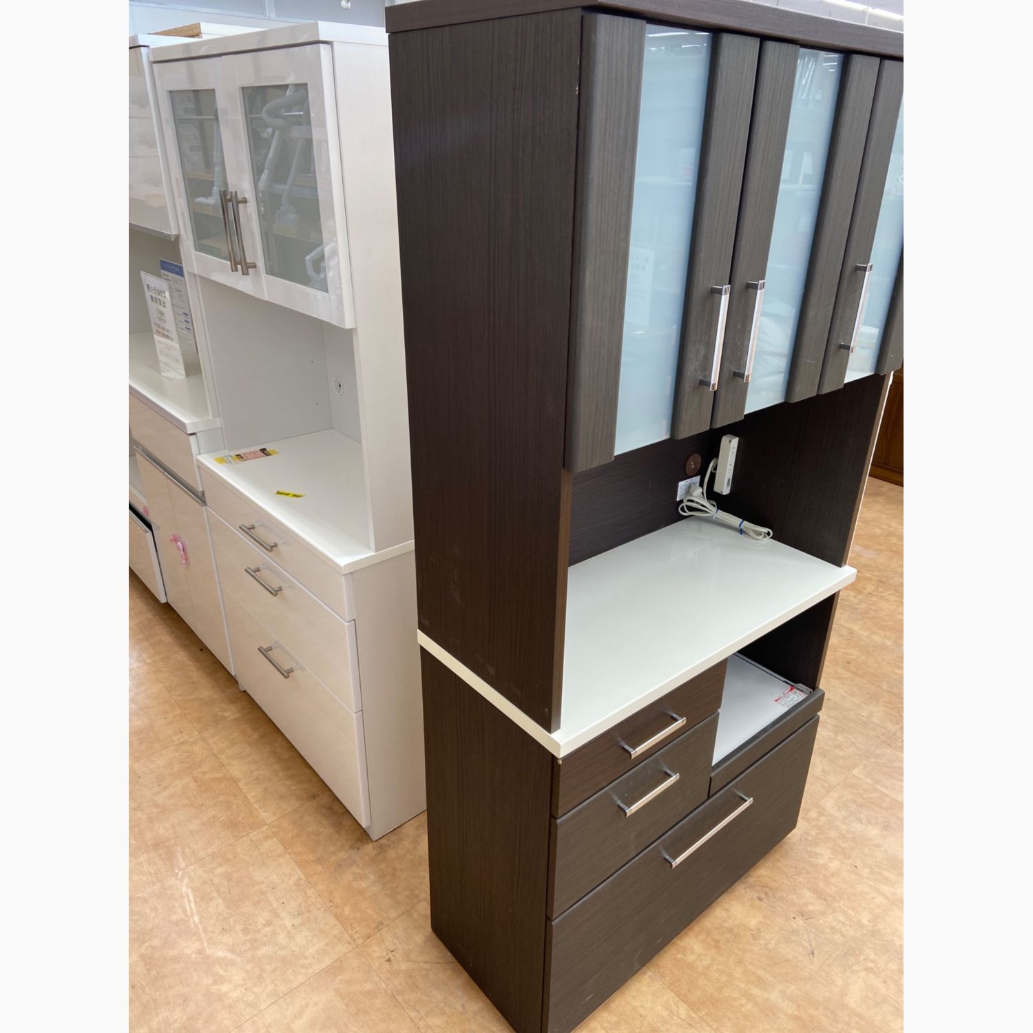 ニトリ 3枚扉 レンジボード ブラウン×ホワイト シミ・ヨゴレ有