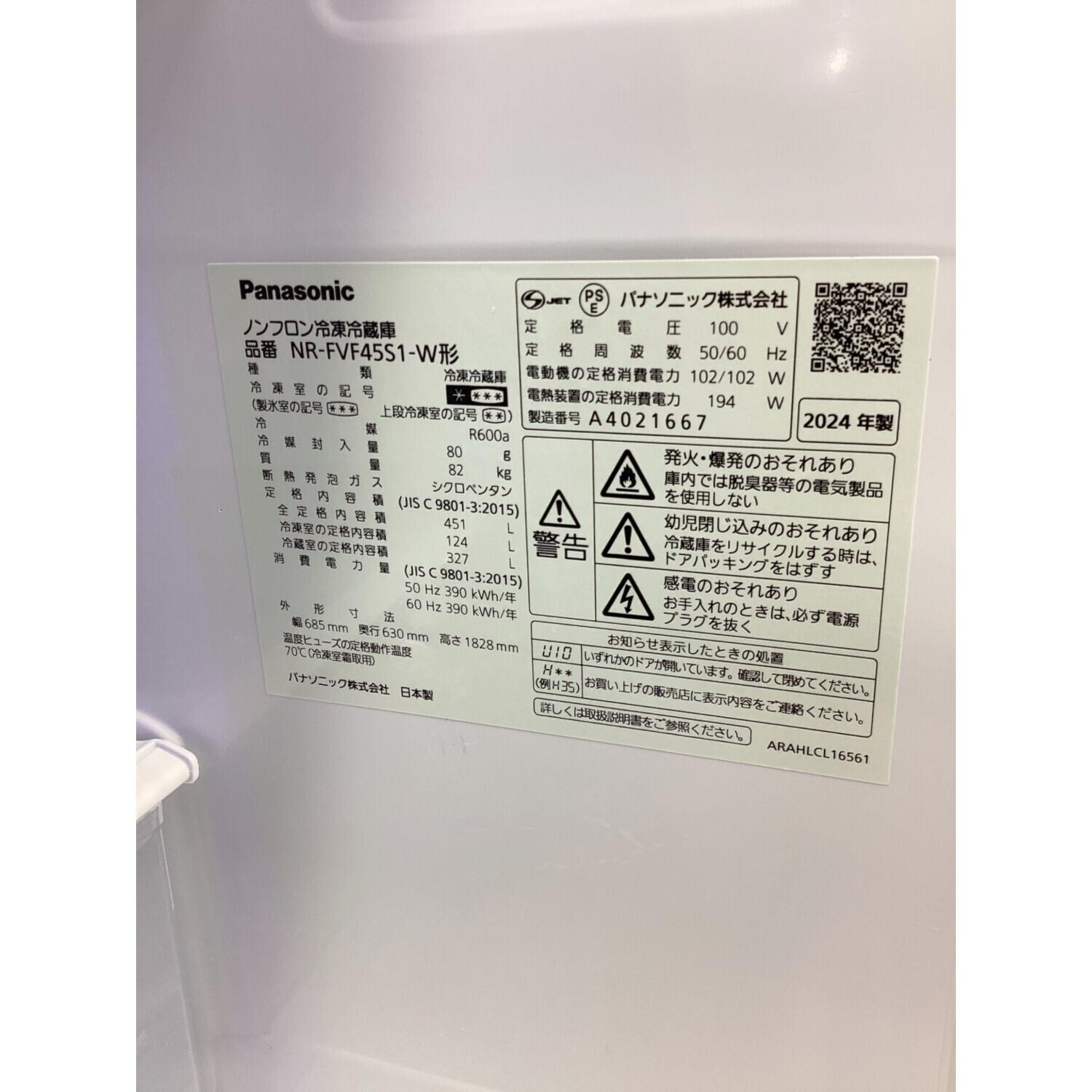 Panasonic (パナソニック) 6ドア冷蔵庫 NR-FVF45S1-W 2024年製 451L 124L クリーニング済