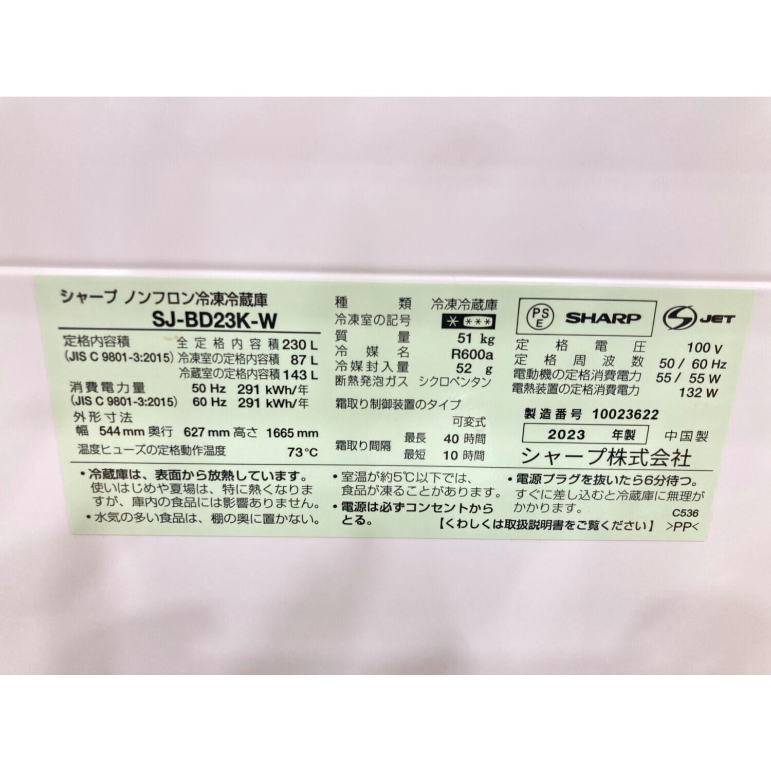 SHARP (シャープ) 2ドア冷蔵庫 SJ-BD23K 2023年製 230L クリーニング済