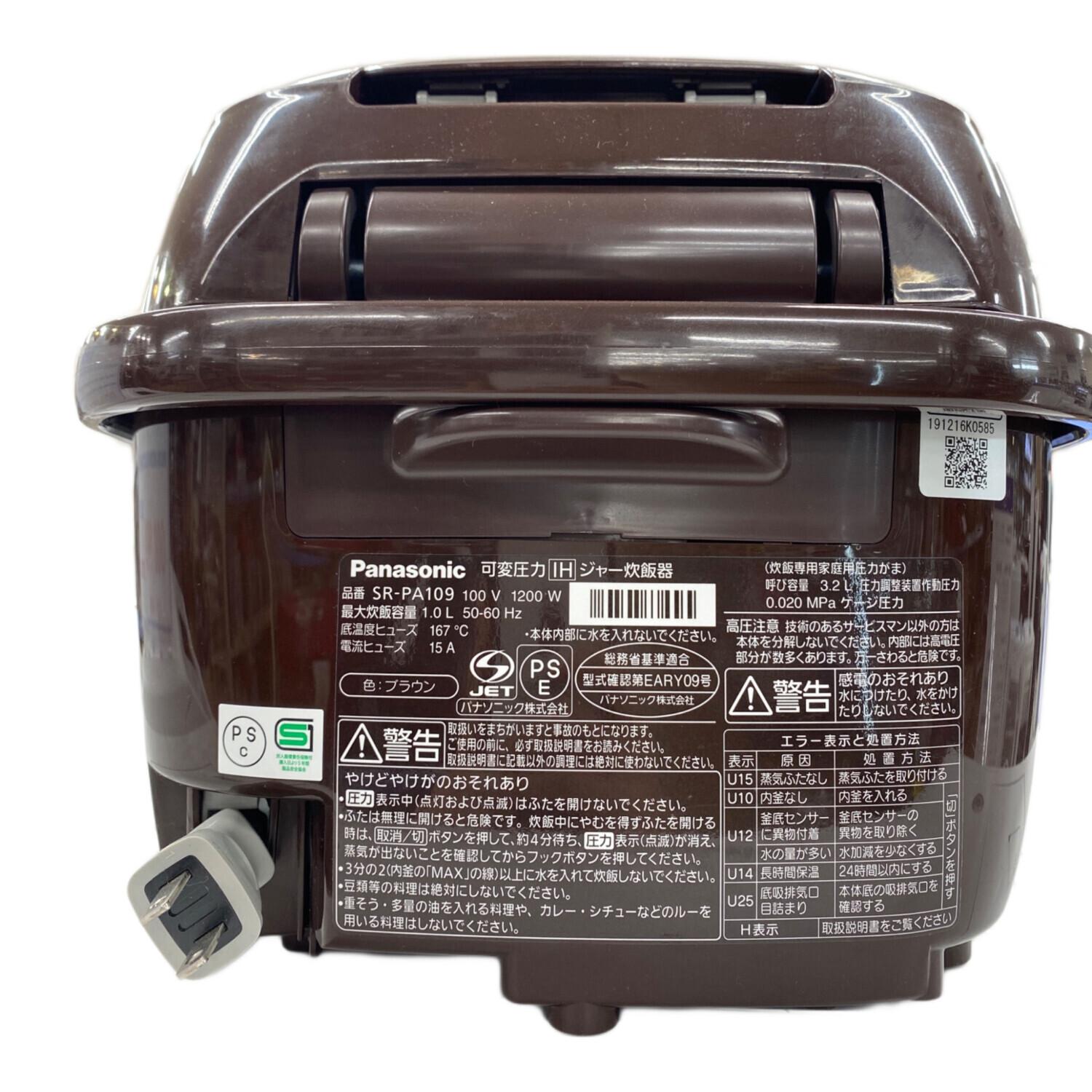Panasonic (パナソニック) 圧力IH炊飯ジャー SR-PA109 2019年製 5.5合(1.0L)
