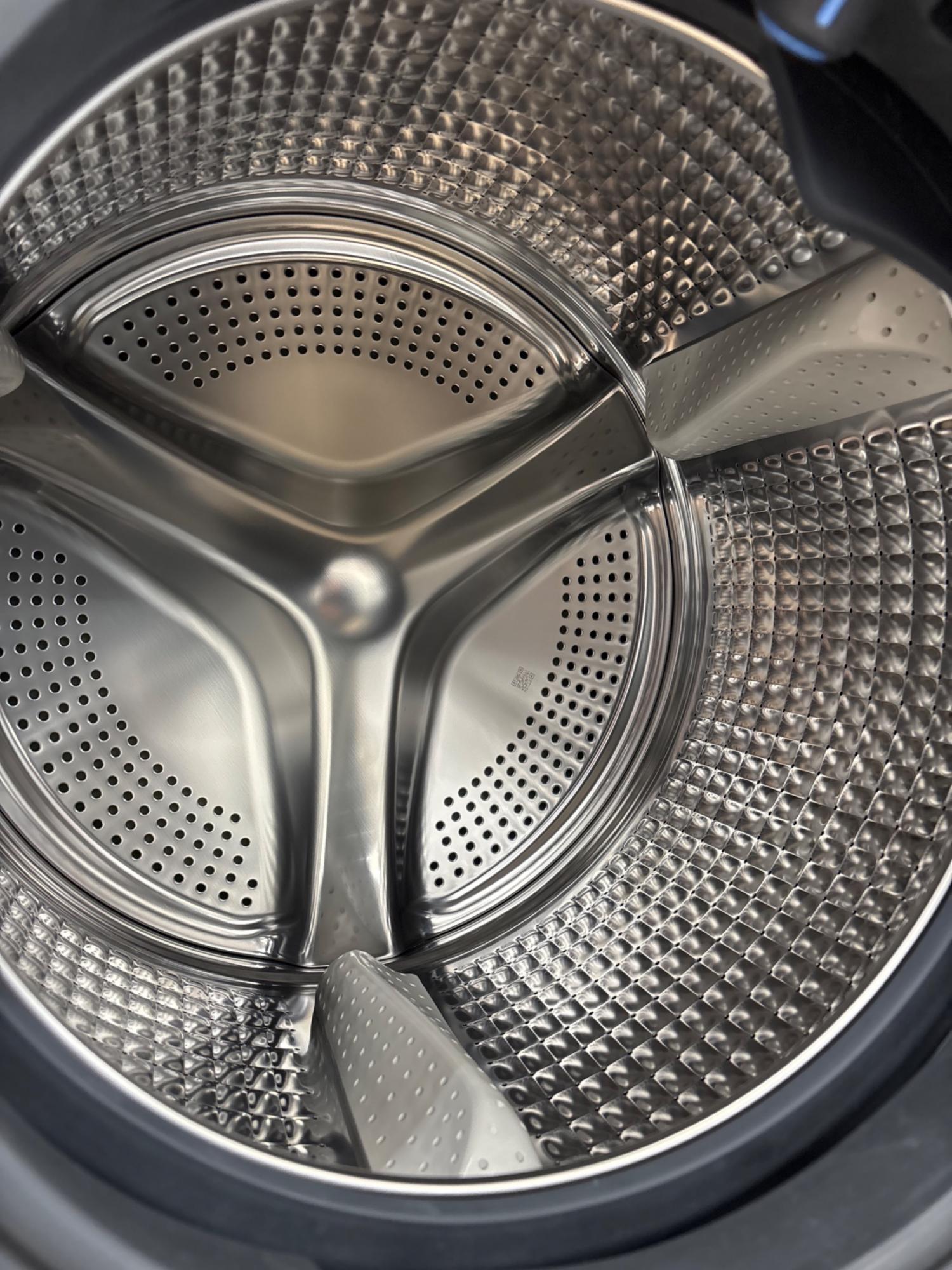ドラムがまっ直ぐになり、ドラムの回転により衣類が自然とほぐれやすい。洗濯槽の手前から奥まで水が行き渡りやすく、洗いムラを防ぐ。
