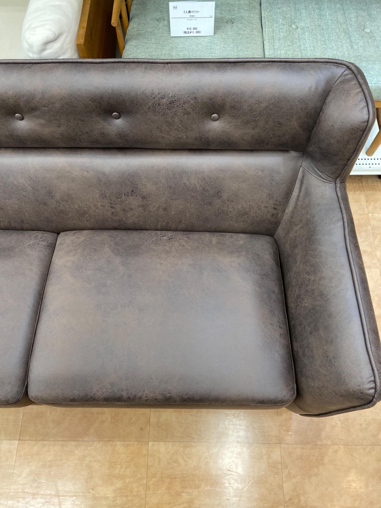 2人掛けソファー オットマン付 ※底面布カバーダメージ有 BR
