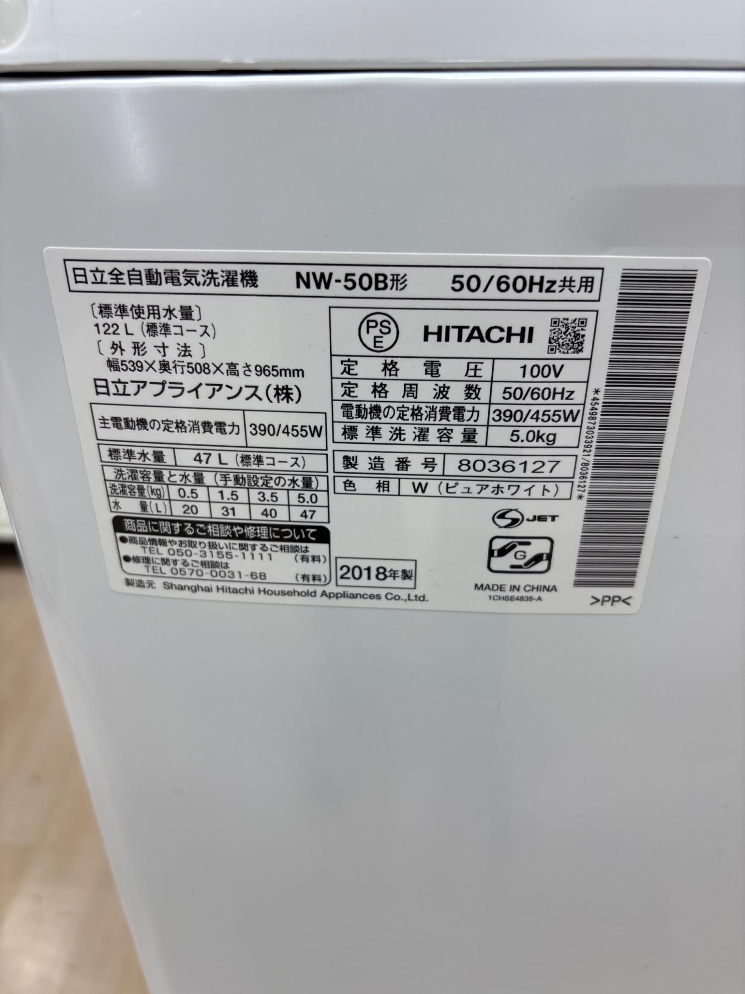 HITACHI (ヒタチ) 全自動洗濯機 NW-50B 2018年製