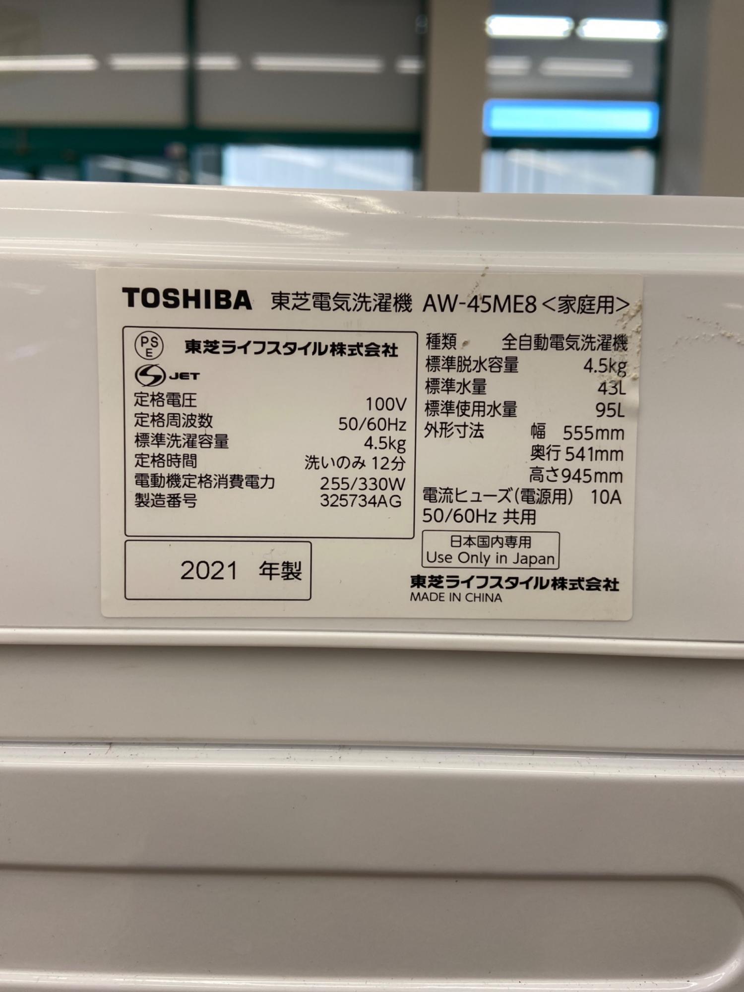 TOSHIBA (トウシバ) 全自動洗濯機 AW-45ME8 2021年製