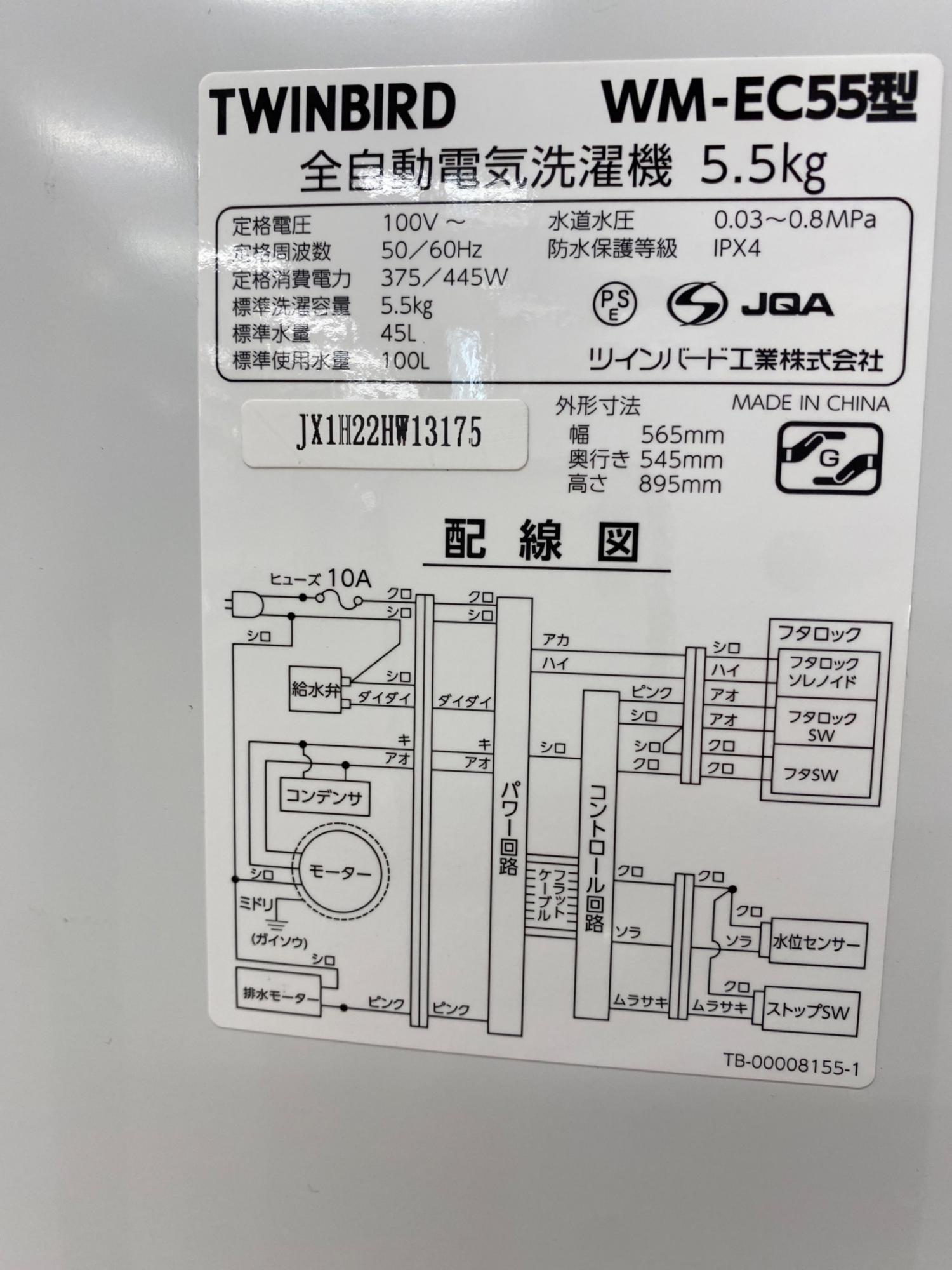 TWINBIRD (ツインバード) 全自動洗濯機 WM-EC55 2021年製