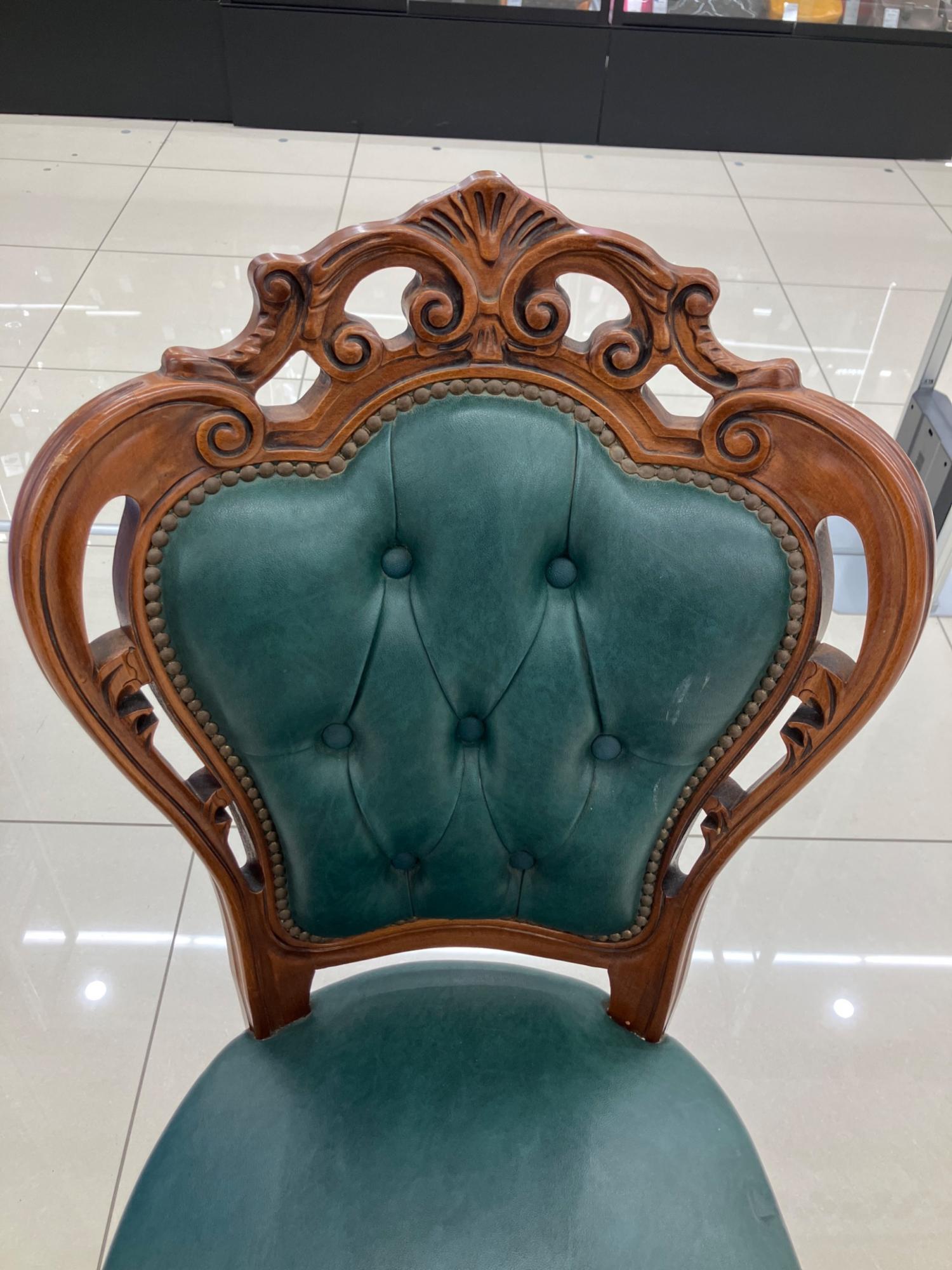 ダイニングチェアー 猫脚 アンティーク調 グリーン×ブラウン