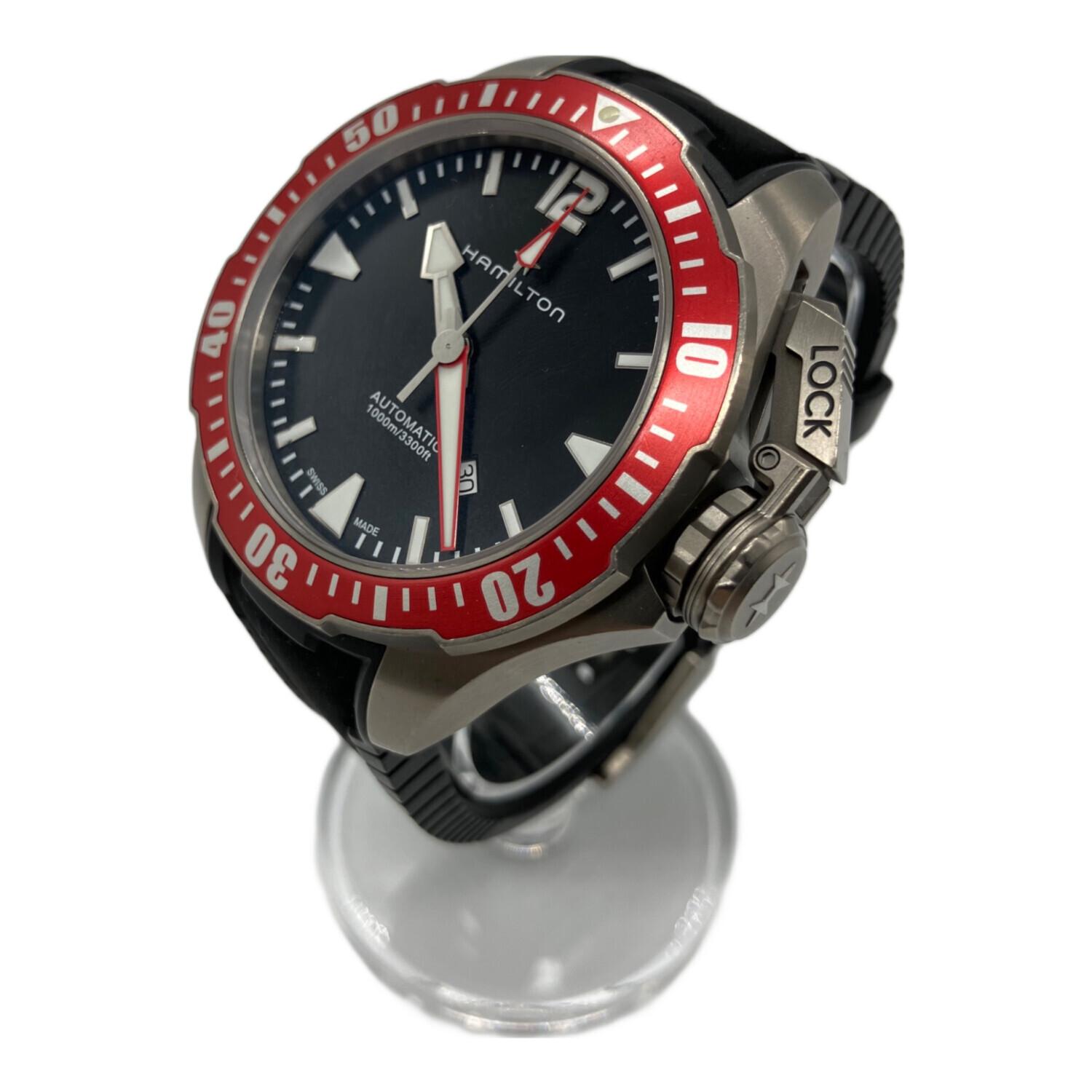 HAMILTON (ハミルトン) ダイバーズウォッチ ブラック 精度未確認@ H778050 カーキネイビー 自動巻き 動作確認済み 17~24㎝ ラバーベルト AJC030327