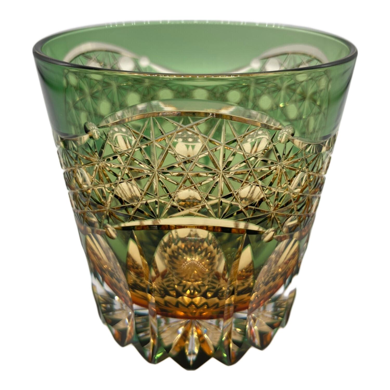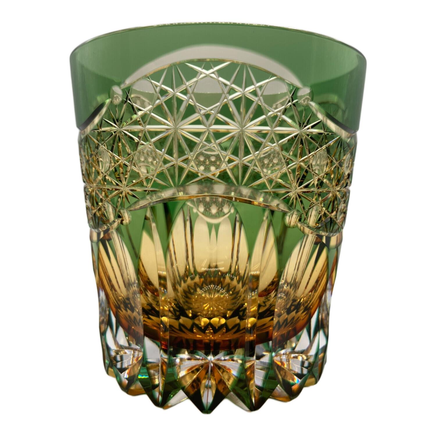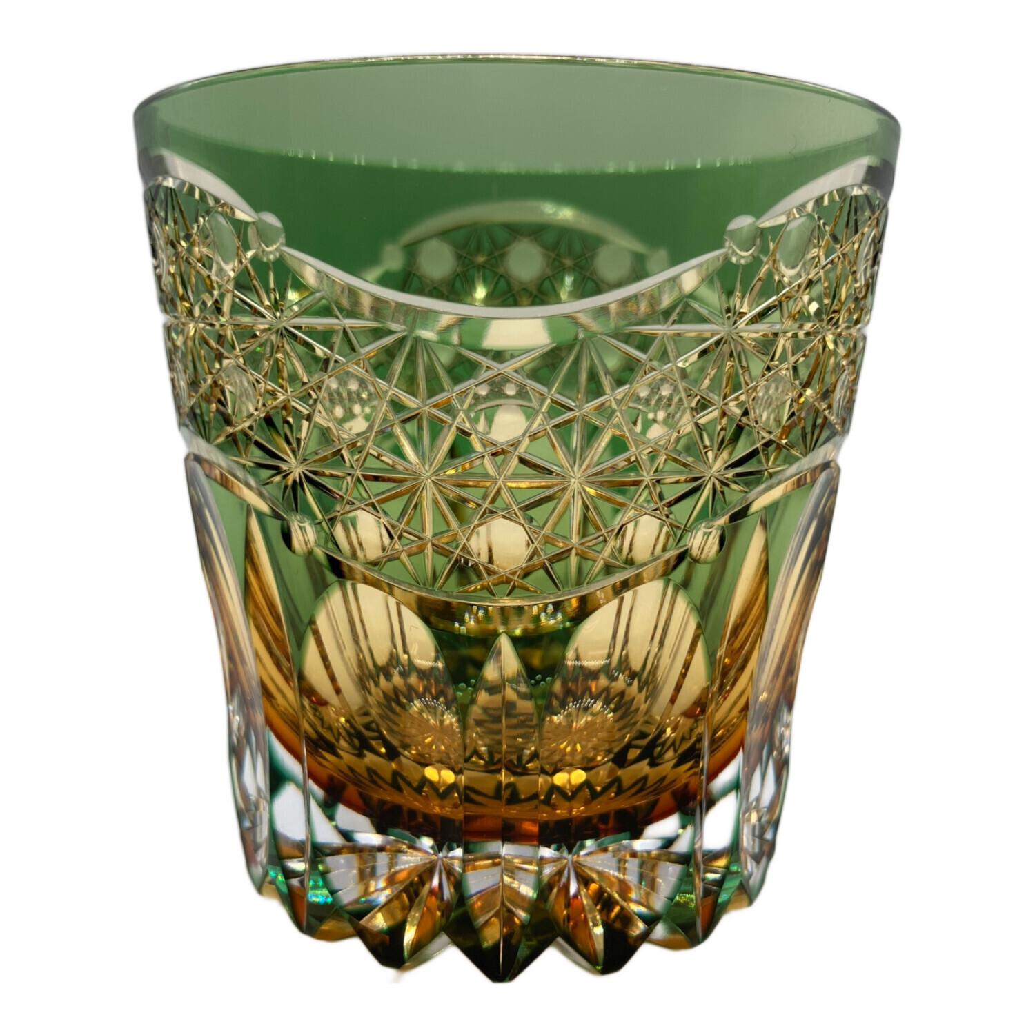 KAGAMI CRYSTAL (カガミクリスタル) 江戸切子 伝統工芸士 鍋谷聰 重ね色目ロックグラス 暁光