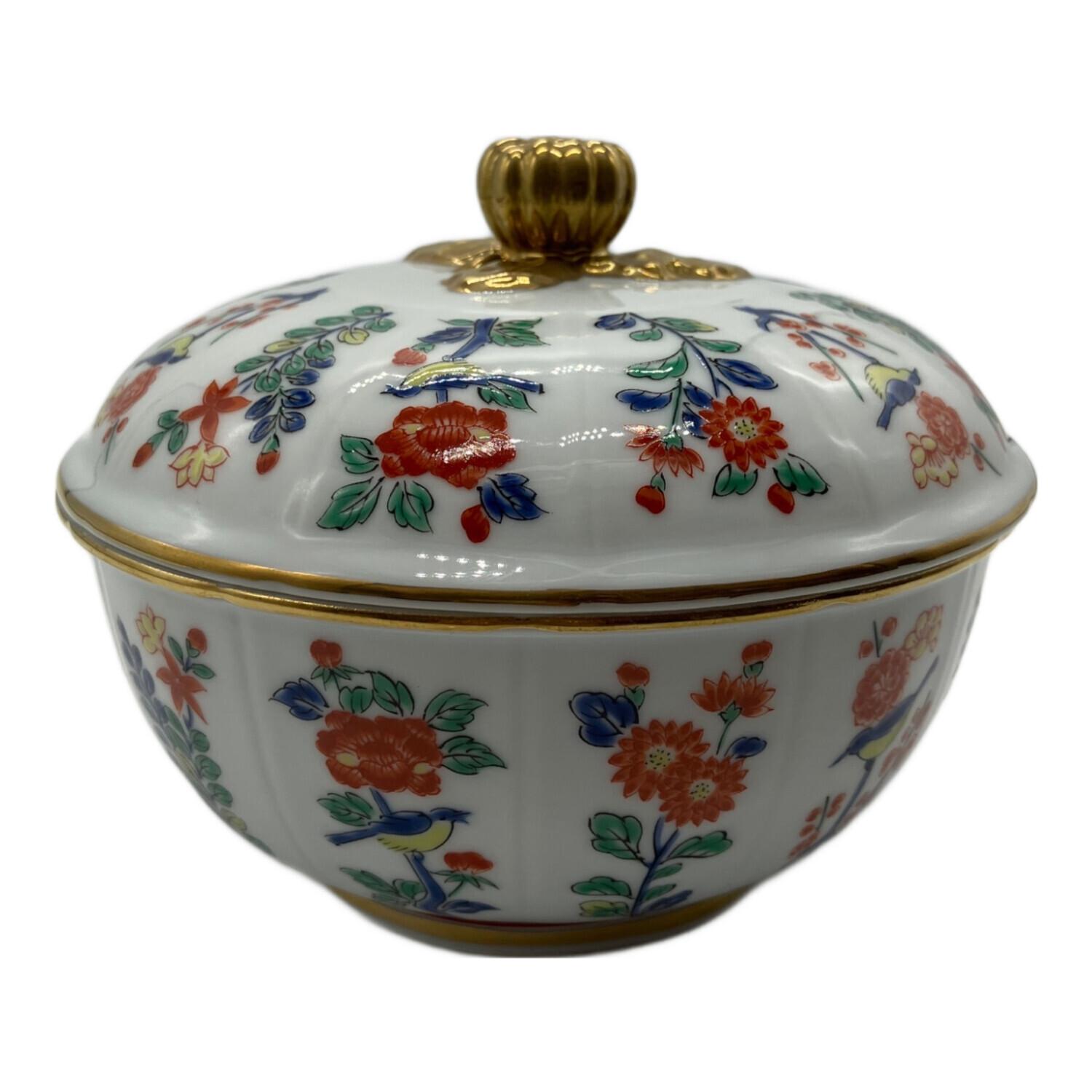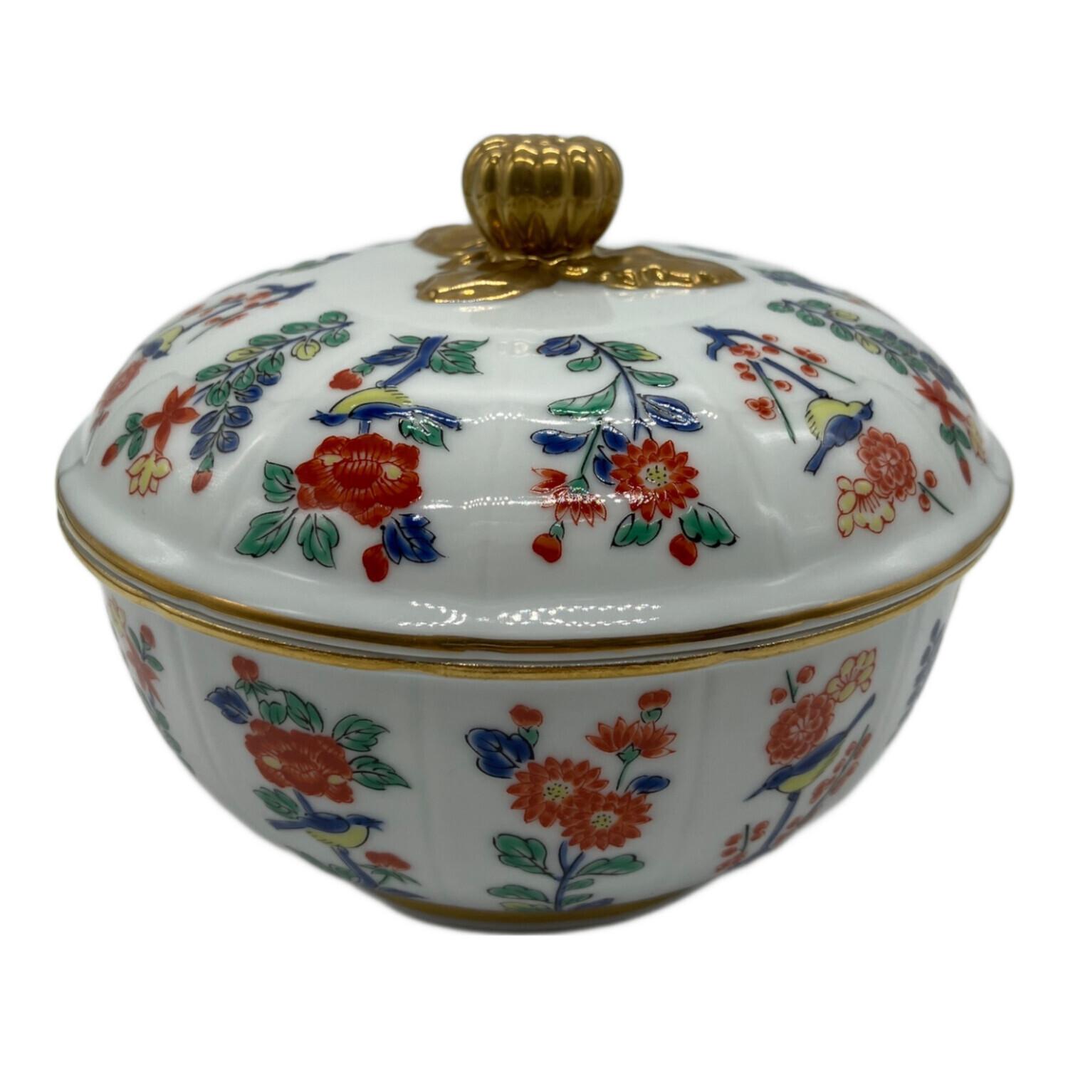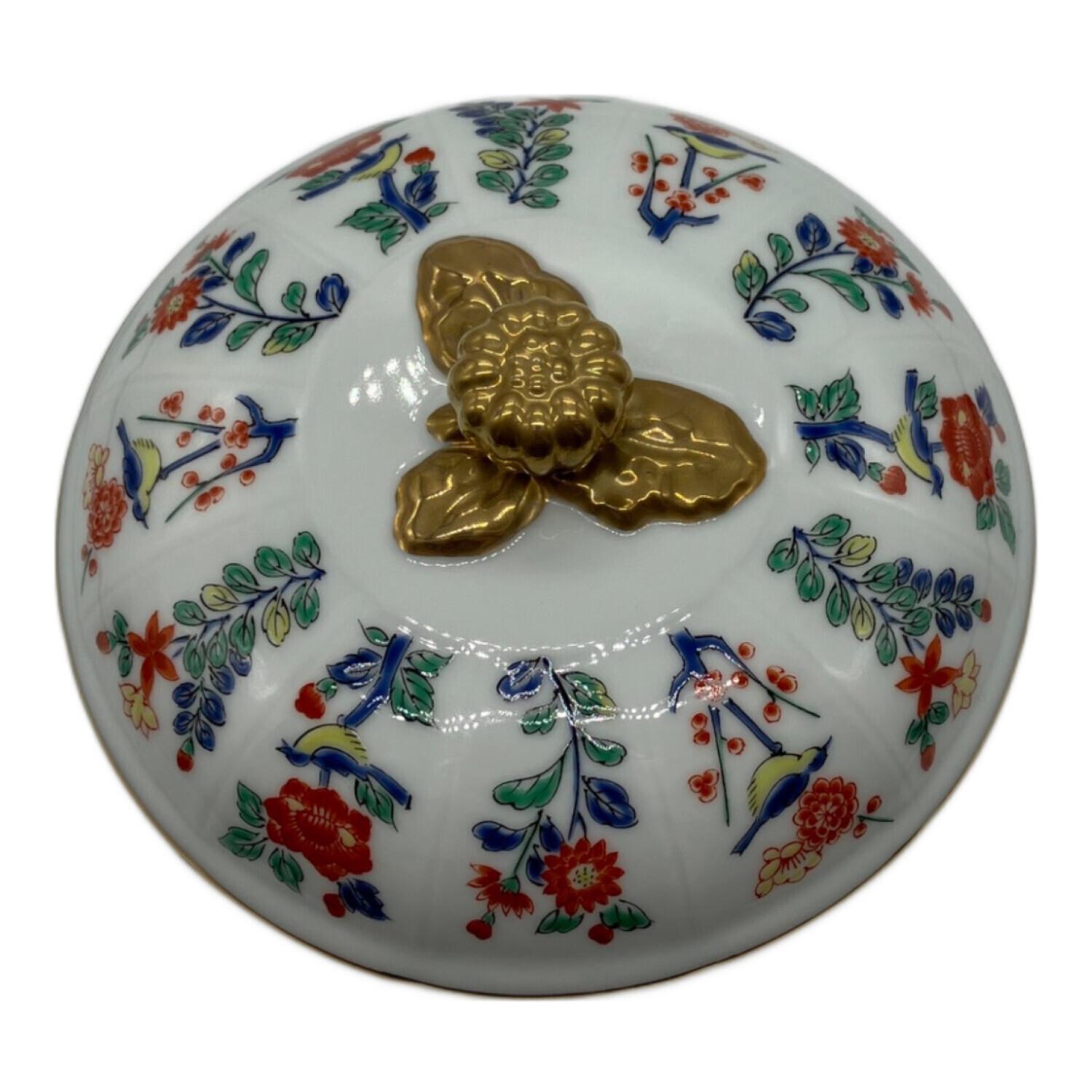 其泉 (キセン) キャンディボックス マイセン写し色絵草花文