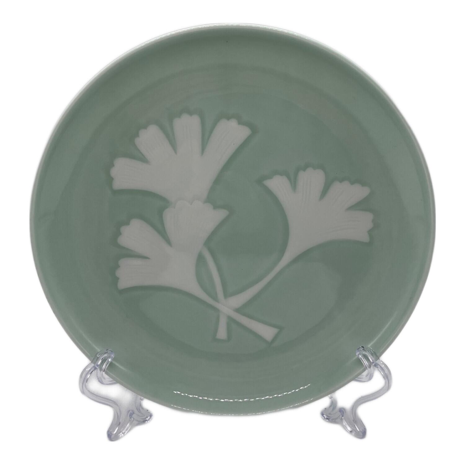 井上萬ニ 皿 青白磁公孫樹文皿