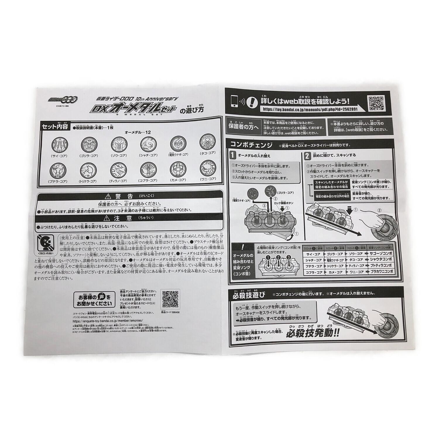 BANDAI (バンダイ) 仮面ライダーOOO 10thAnniversary DXオーメダルセット (BANDAI TOYS SHOP限定) 仮面ライダー 開封品