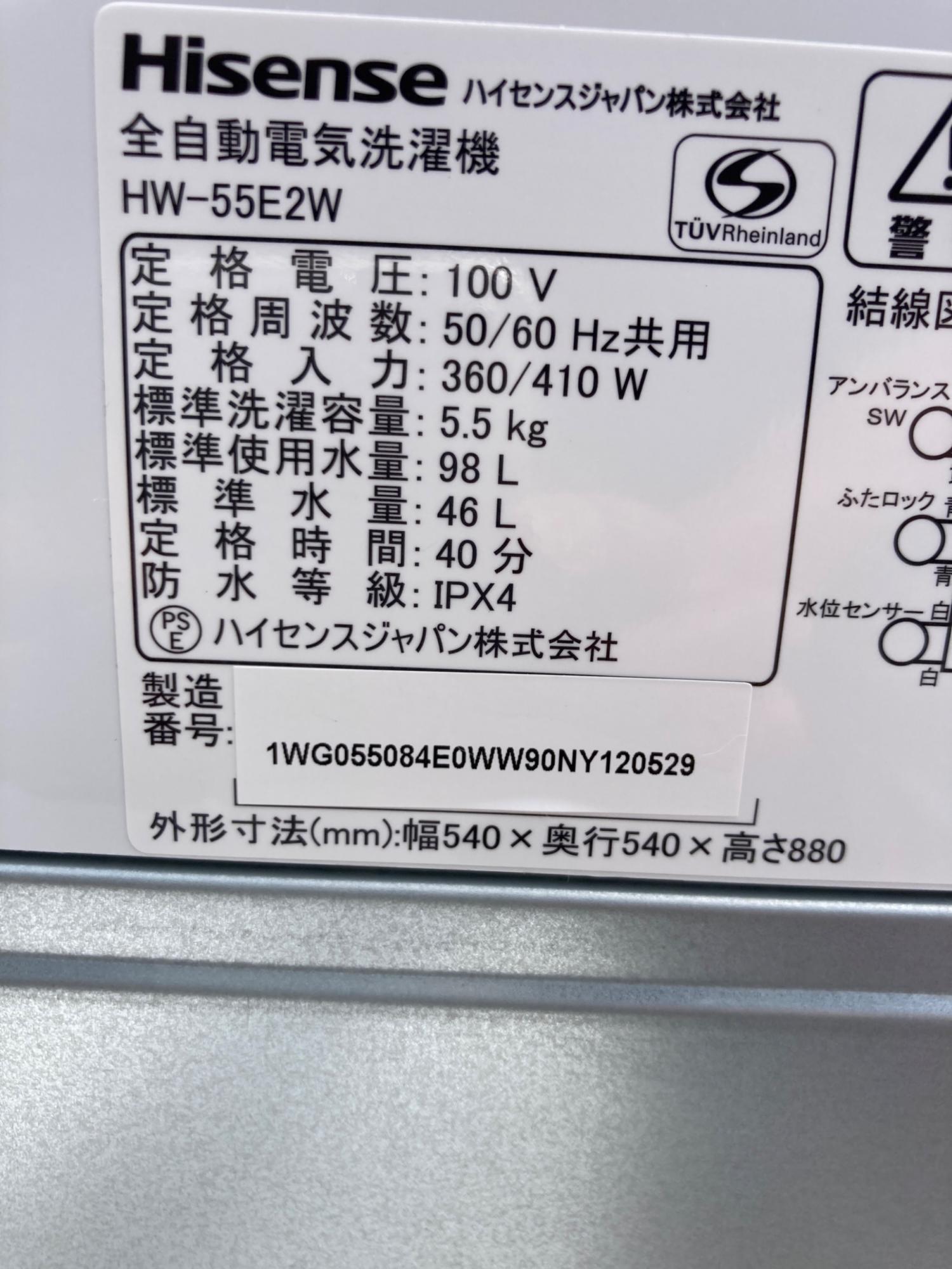 Hisense (ハイセンス) 全自動洗濯機 HW-55E2W 2024年製