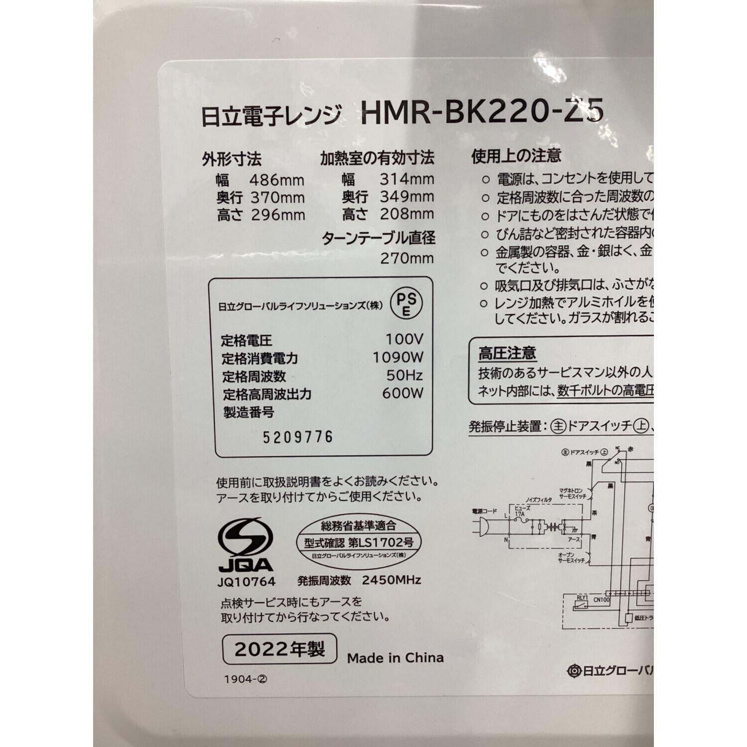 HITACHI (ヒタチ) 電子レンジ HMR-BK220-Z5 2022年製 600w ターンテーブル 50Hz専用
