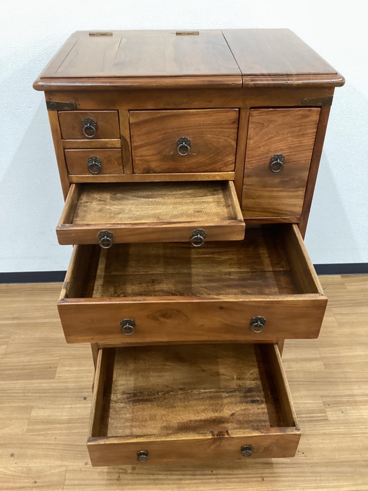 old maison (オールドメゾン) ドレッサーチェスト ブラウン 開閉式鏡付 OM-128 オールドチーク材 ビンテージ品