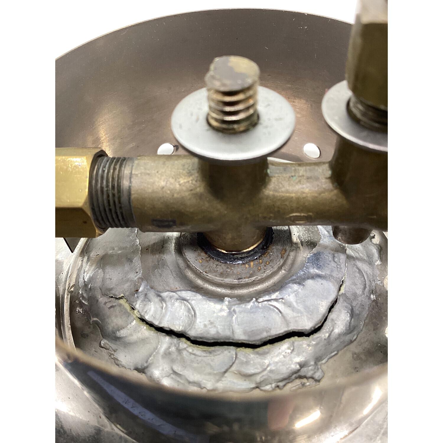 タンク・バルブアッシー接合部クラックによる破損があり圧の保持ができないお品物となっております。
