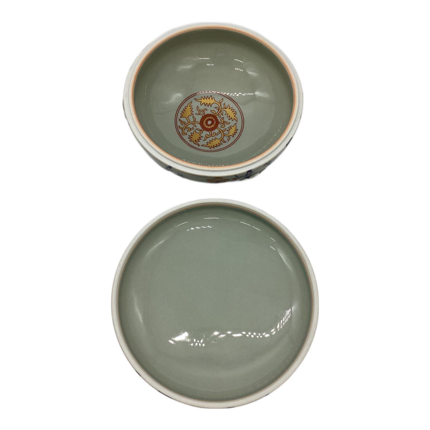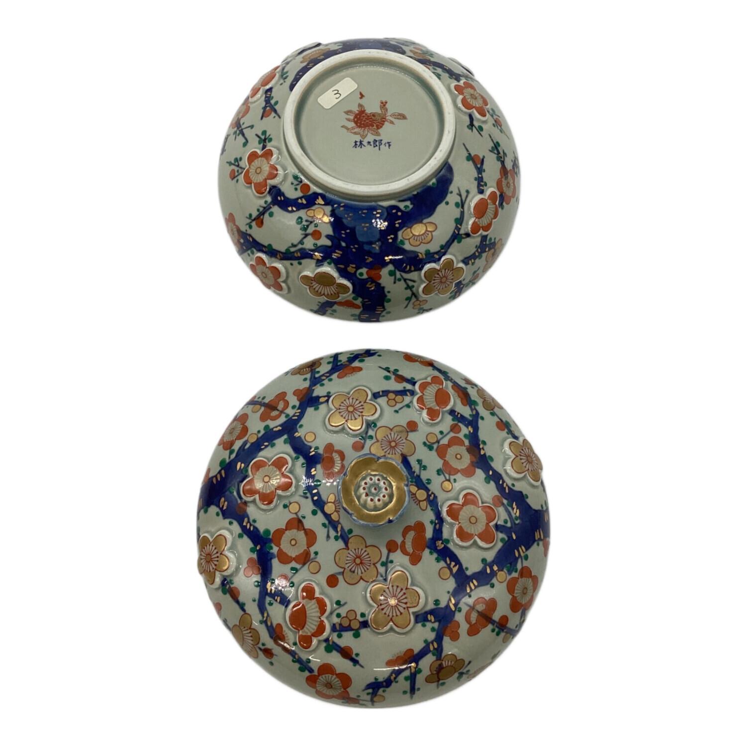 有田焼 (アリタヤキ) 蓋物 青釉梅陽刻文 林 九郎