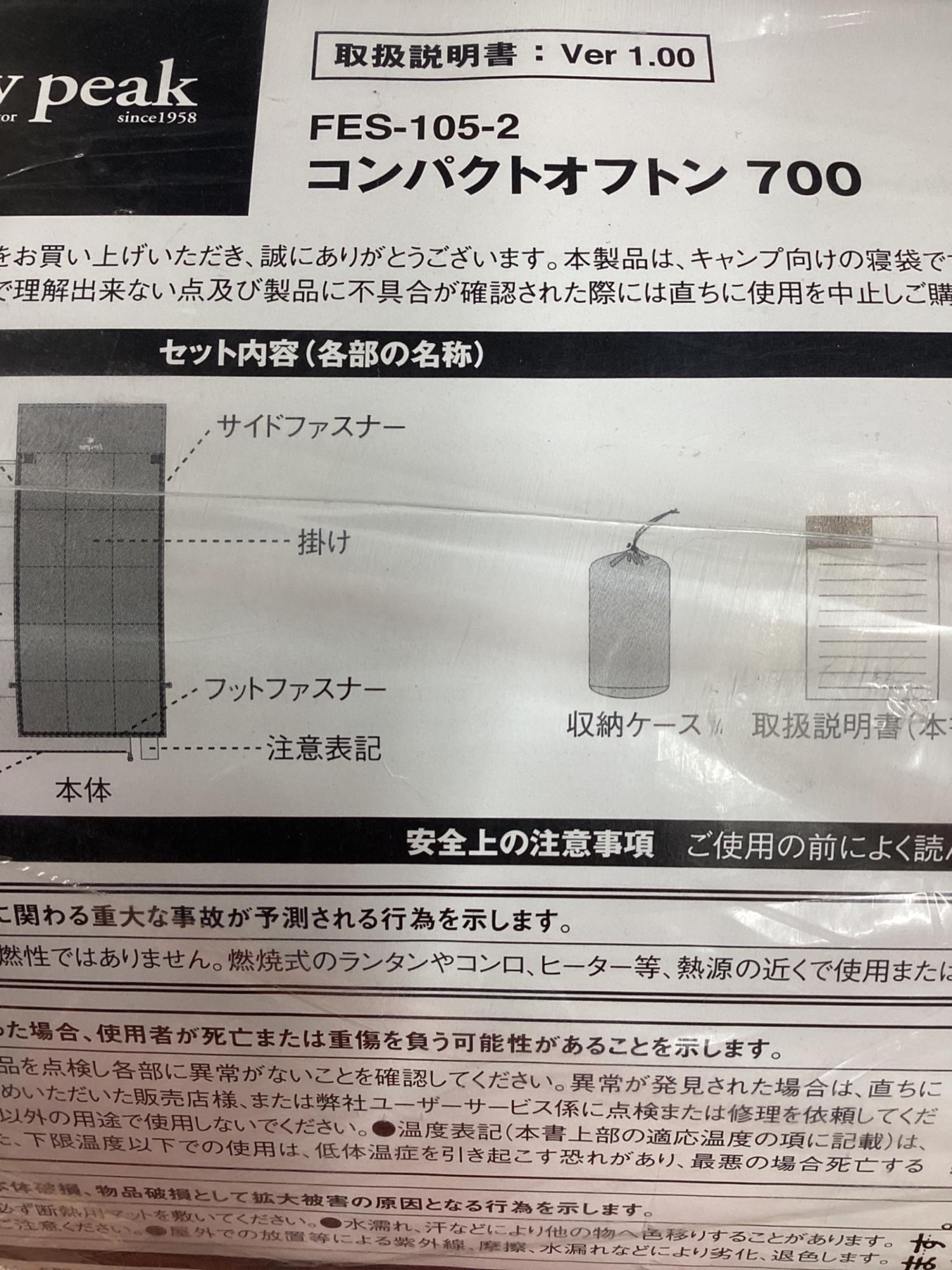 Snow peak (スノーピーク) 封筒型シュラフ(ダウン) FES-105-2 雪峰祭2023 コンパクトオフトン700