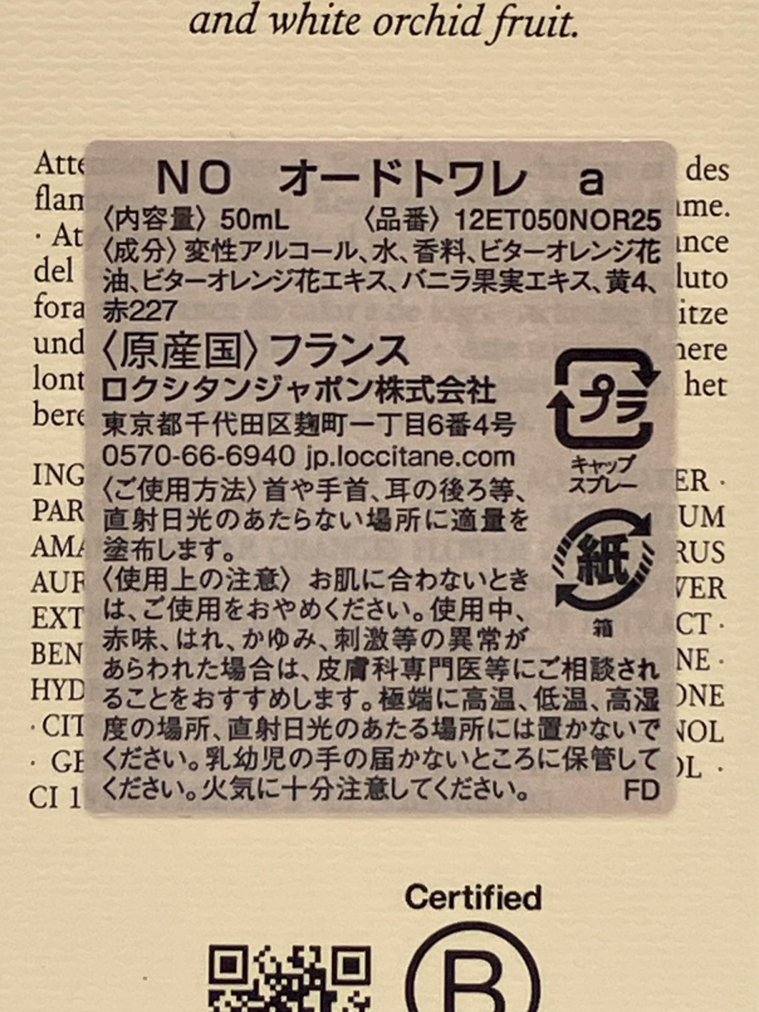 L'OCCITANE (ロクシタン) NÉROLI ORCHIDÉE (ネロリオーキデ) オードトワレ 50ml 残量80%-99%