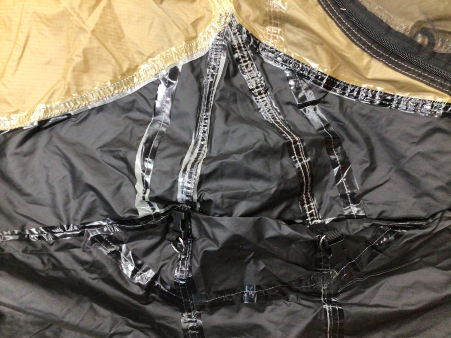 テント本体のスカート付近のシームが多少浮いております。