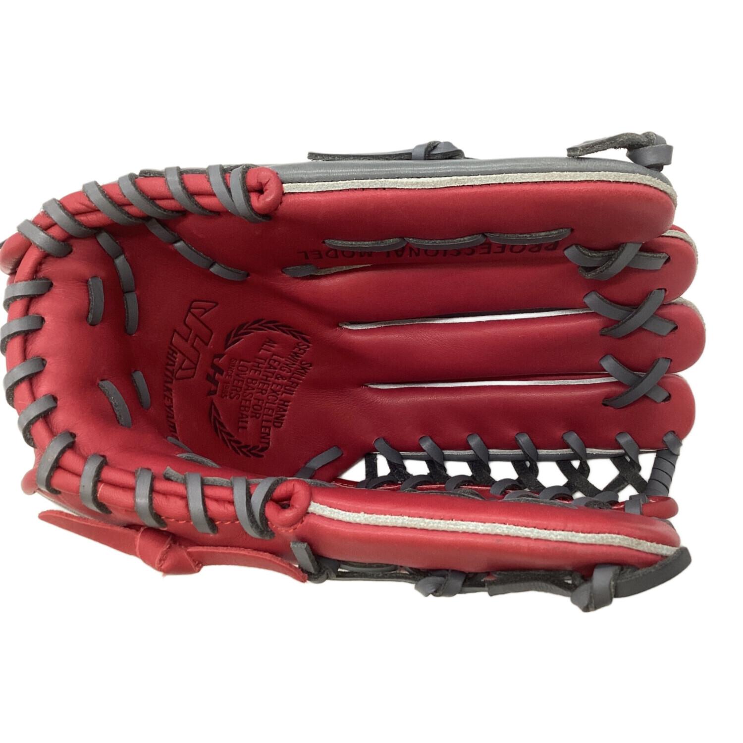 HATAKEYAMA (ハタケヤマ) 硬式グローブ レッド×グレー PROFESSIONAL MODEL 外野用 左投げ用 08-309