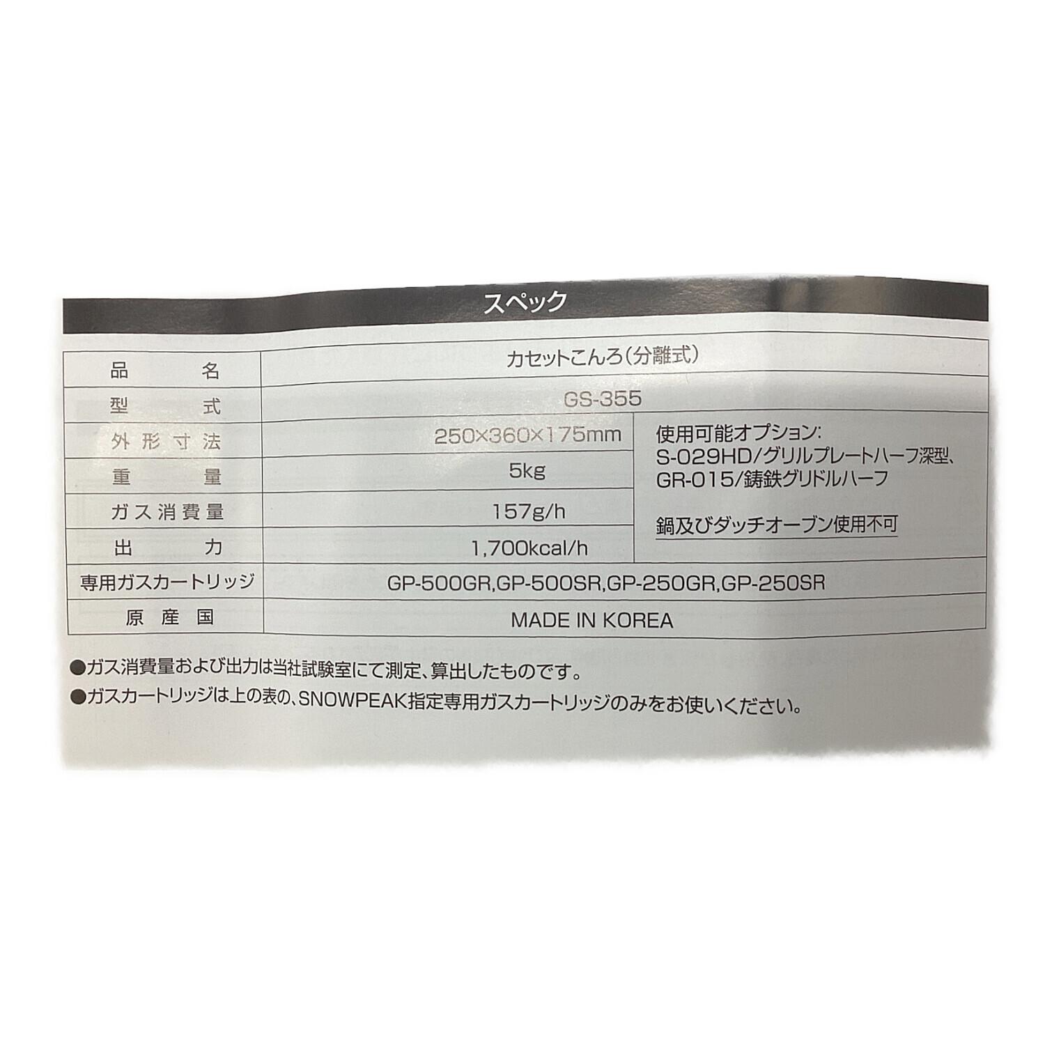 Snow peak (スノーピーク) シングルガスバーナー グリルバーナー雪峰苑 PSLPGマーク有 GS-355 2023年4月製 使用燃料【OD缶】 未使用品