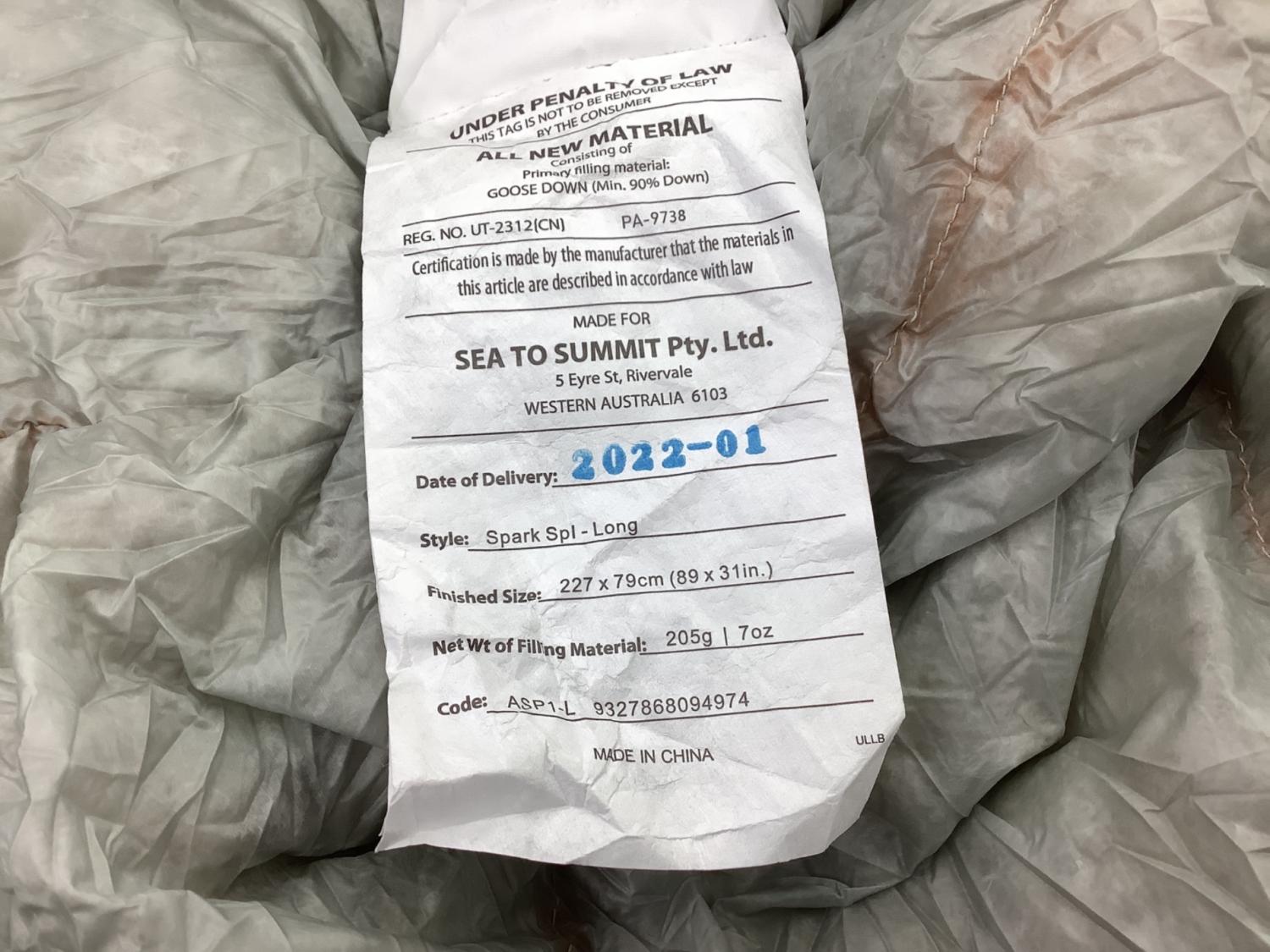 SEA TO SUMMIT (シートゥサミット) マミー型シュラフ(ダウン) 850FP スパーク SP