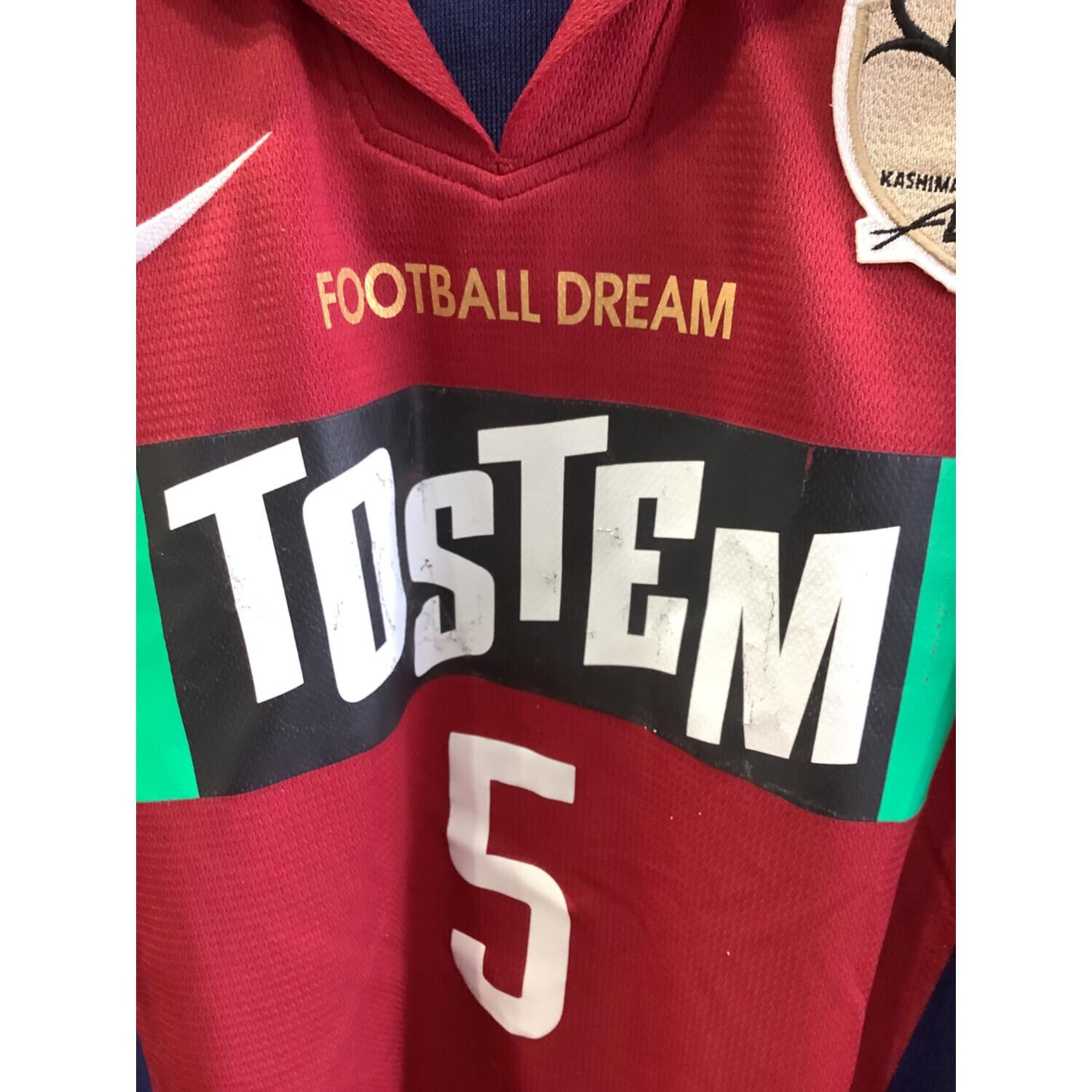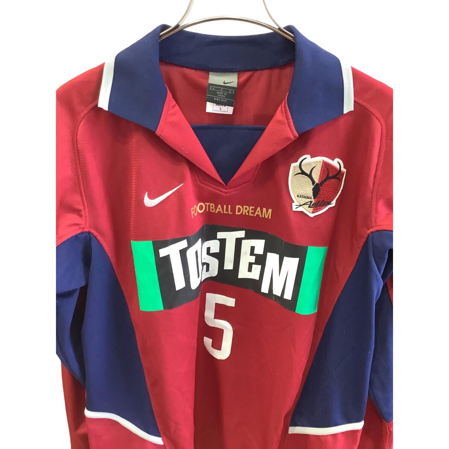 鹿島アントラーズ (カシマアントラーズ) サッカーユニフォーム メンズ SIZE L ネイビー×レッド ※サイン保証有 【5】中田 浩二 2002-2003シーズン ホーム 長袖
