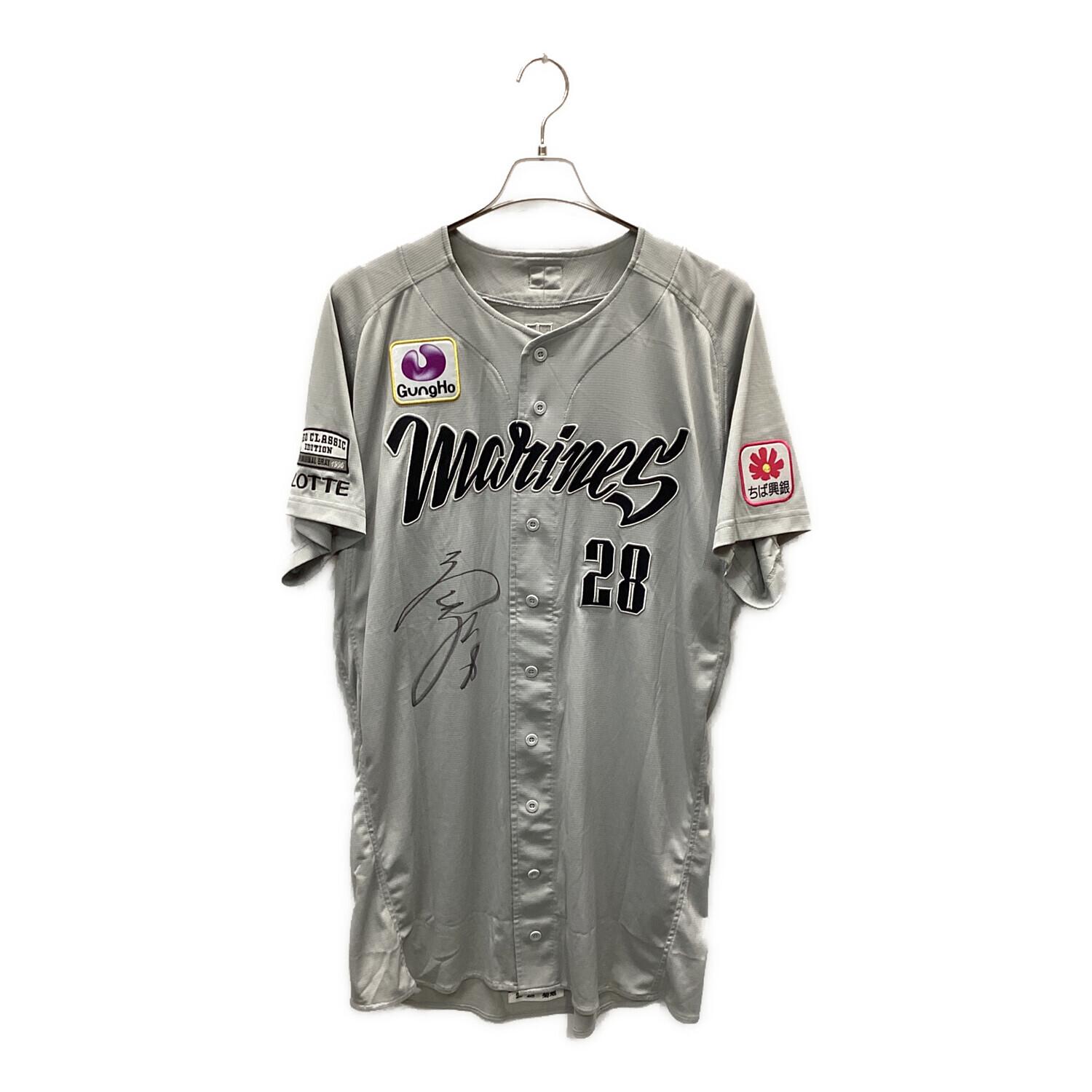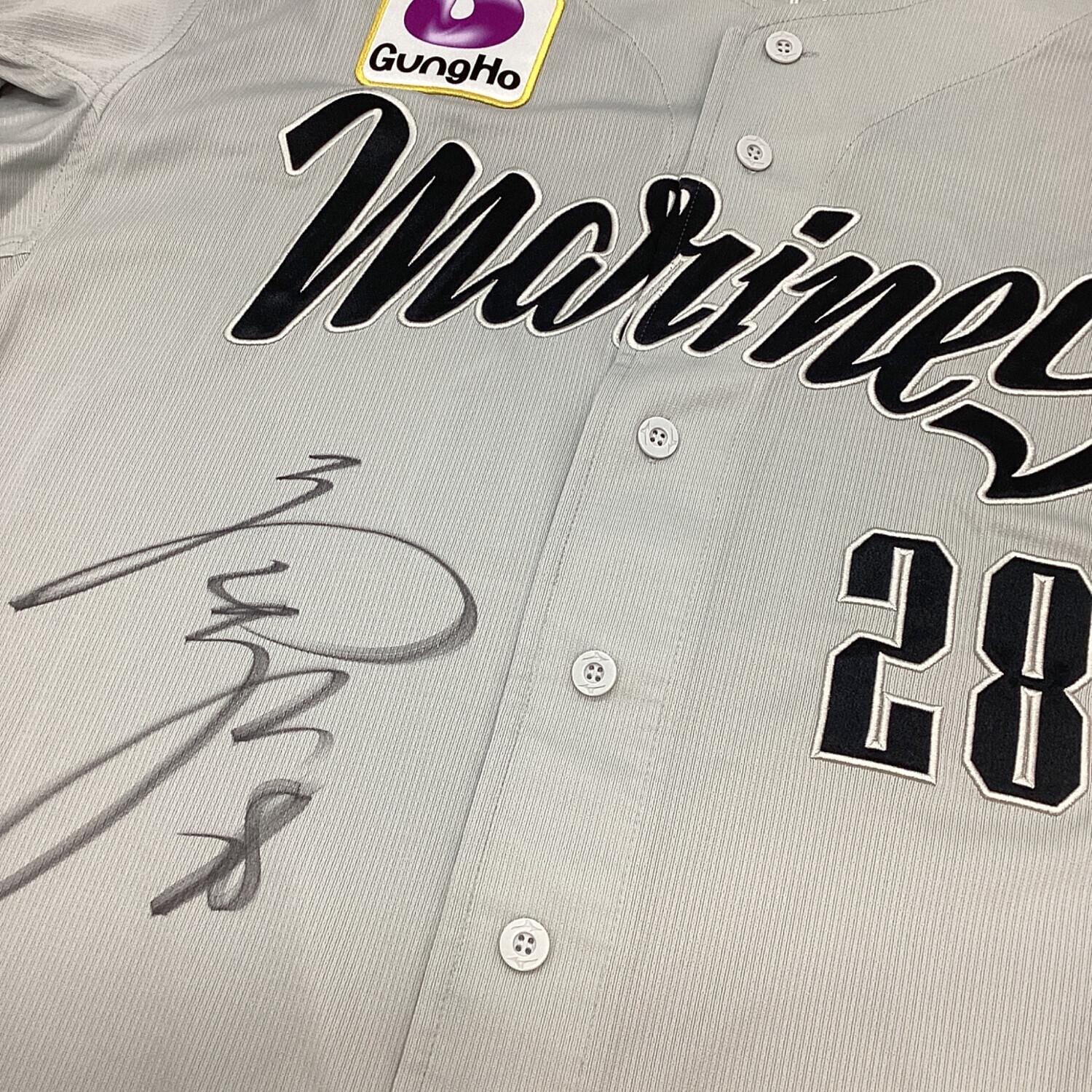 千葉ロッテマリーンズ (チバロッテマリーンズ) 28 菊池吏玖 サイン入りNECユニフォーム 応援グッズ マリーンズ・メモラビア証明書付 グレー