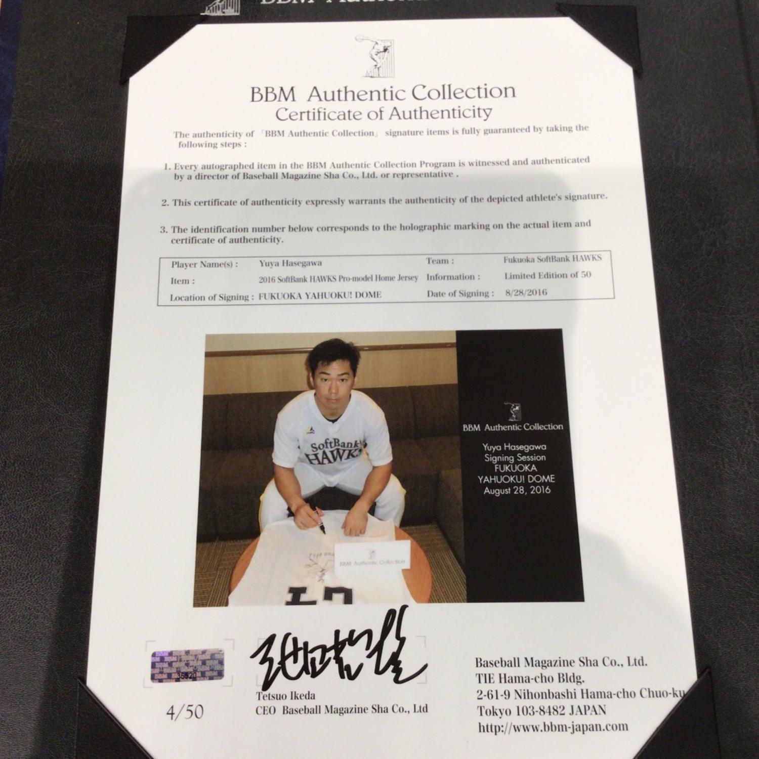 福岡ソフトバンクホークス (フクオカソフトバンクホークス) 長谷川勇也【24】2016年通算1000安打記念 直筆サイン入りオーセンティック・ジャージ ホワイト 未使用品