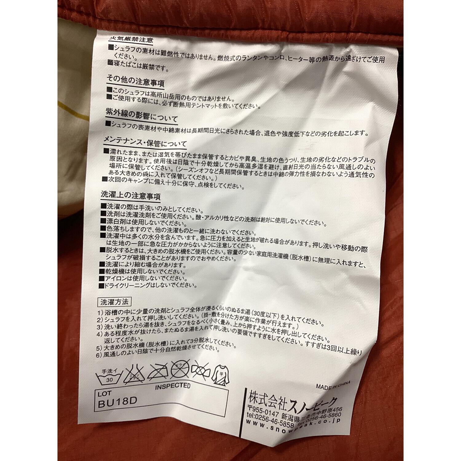 Snow peak (スノーピーク) 封筒型シュラフ(化繊) 元箱付き BD-104 セパレートシュラフ オフトンワイド LX 【春~秋用】 約210×110cm 未使用品