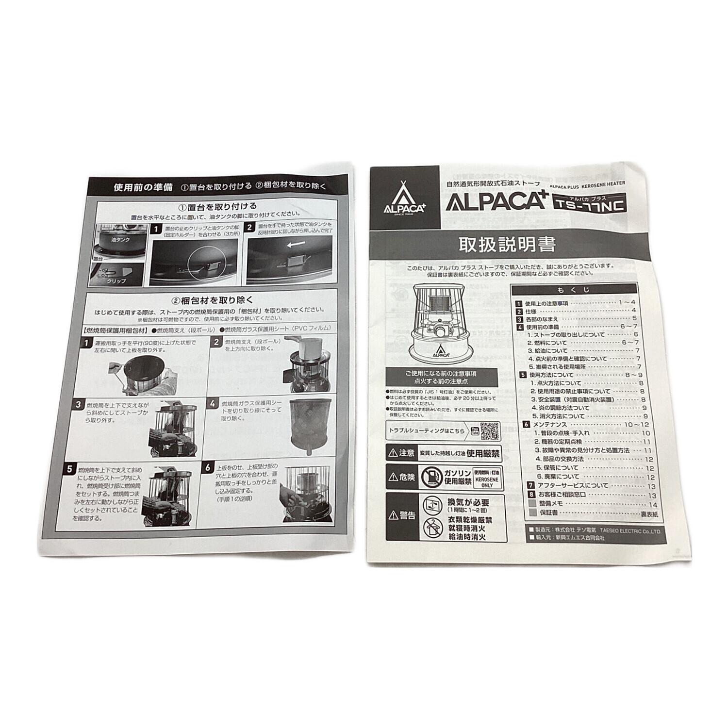 ALPACA (アルパカ) アウトドアヒーター TS-77NC タンク容量3.7L/暖房出力3.0kW ブラック PSCマーク有