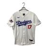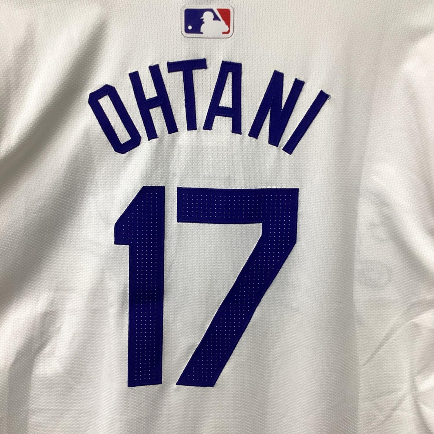 ロサンゼルス・ドジャース 応援グッズ SIZE 48 ホワイト×ブルー ワールドシリーズ優勝バッジ付エリートジャージ ユニフォーム 【17】大谷翔平 選手着用仕様