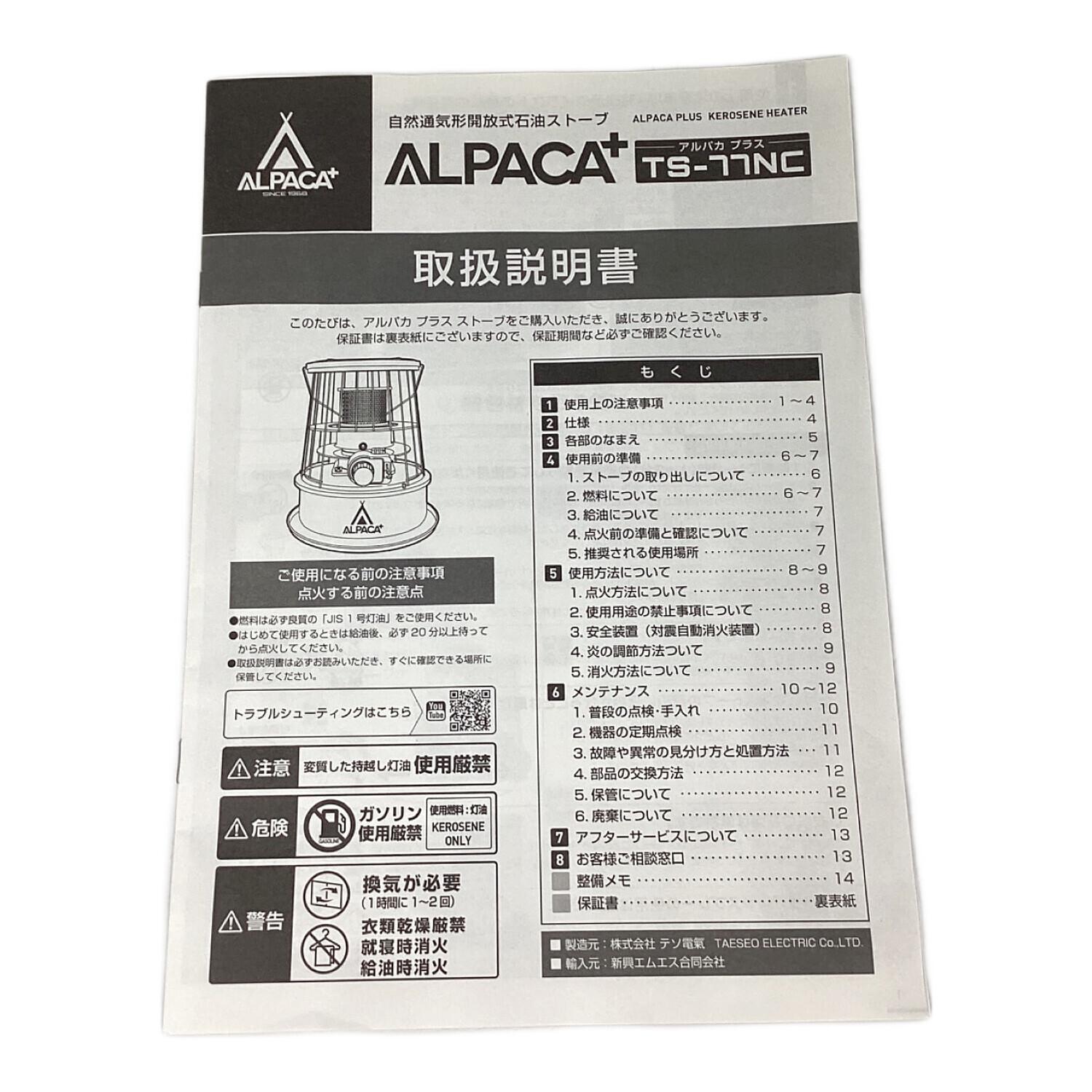 ALPACA+ (アルパカ) アルパカプラスストーブ アウトドアヒーター TS-77NC タンク容量3.7L/暖房出力3.0kW PSCマーク有