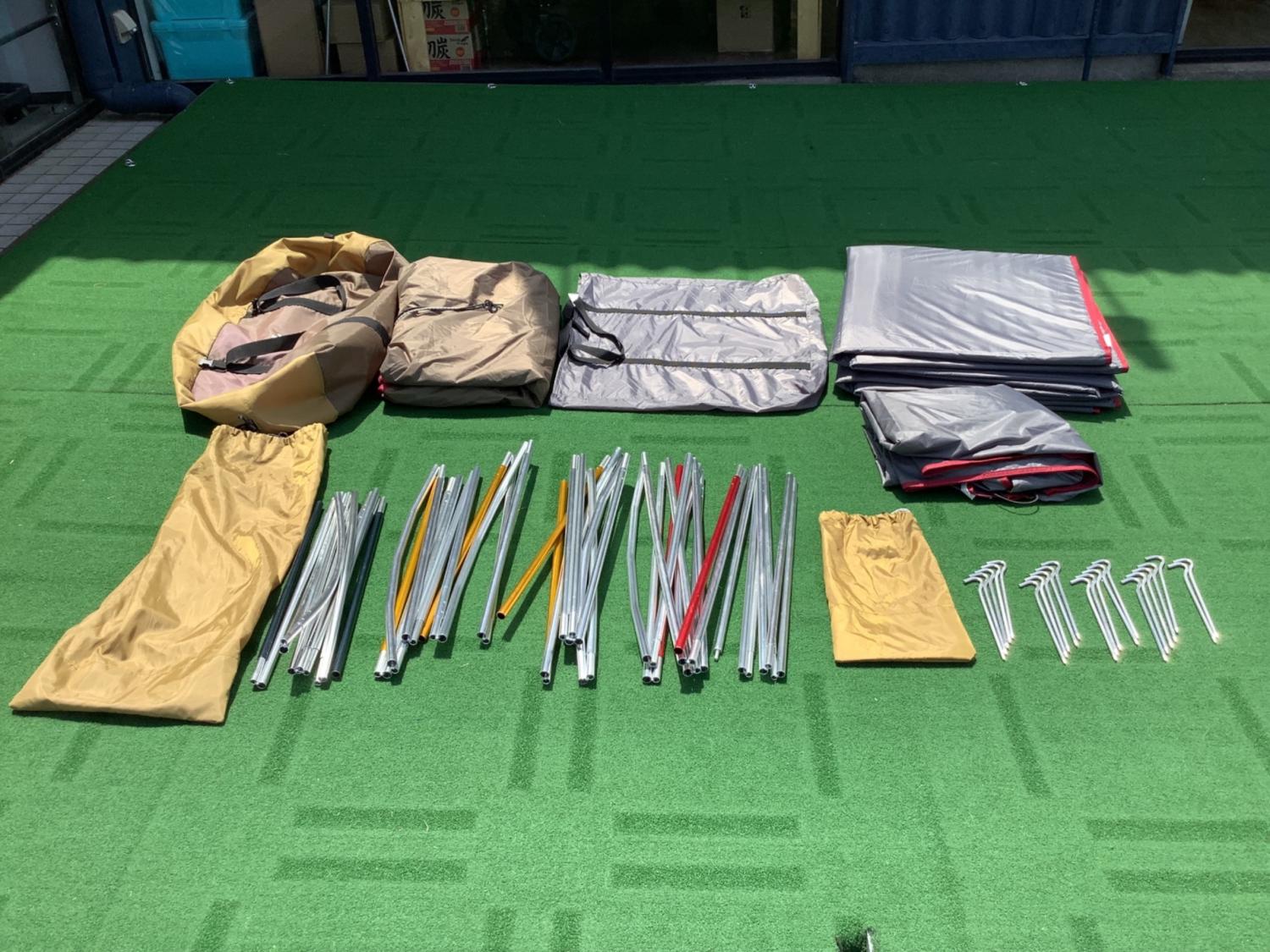 ※発送の関係上、テント・タープの梱包は本体をそのまま緩衝材(プチプチ)で巻いて発送、または収納袋から取り出して折り畳んでダンボールに梱包してのお届けとなる場合がございます。ご了承ください。