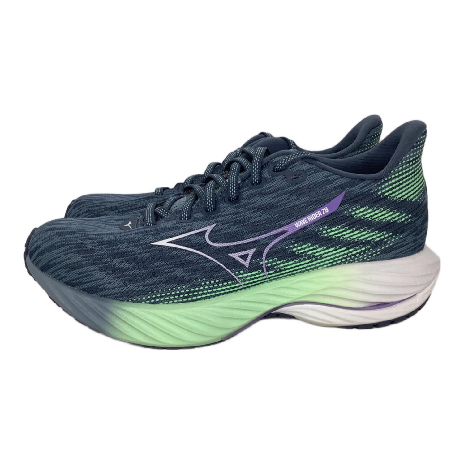 MIZUNO (ミズノ) ランニングシューズ J1GD240371 ウエーブライダー 28 レディース SIZE 25cm ネイビー×黄緑