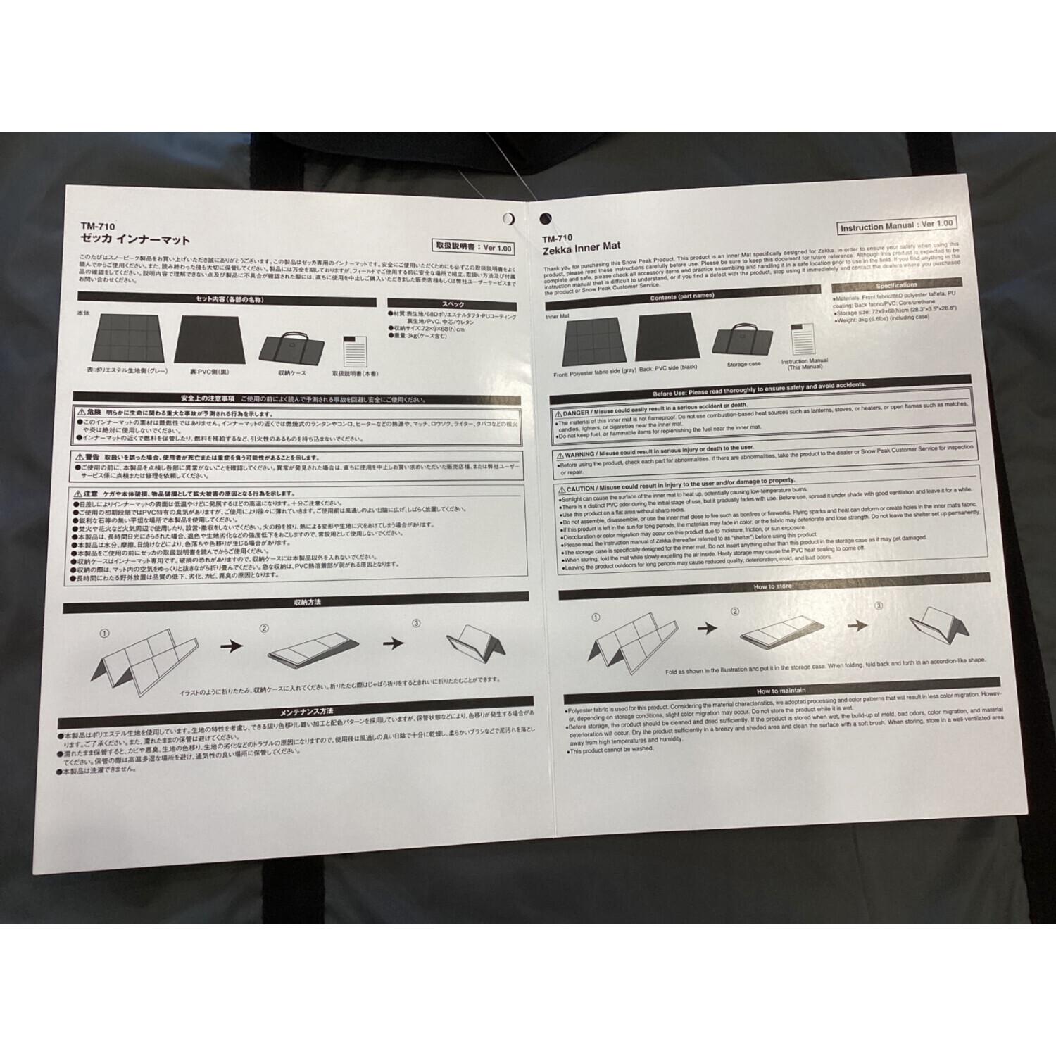 Snow peak (スノーピーク) テントインナーマット TM-710 約280×204㎝ ゼッカ用インナーマット