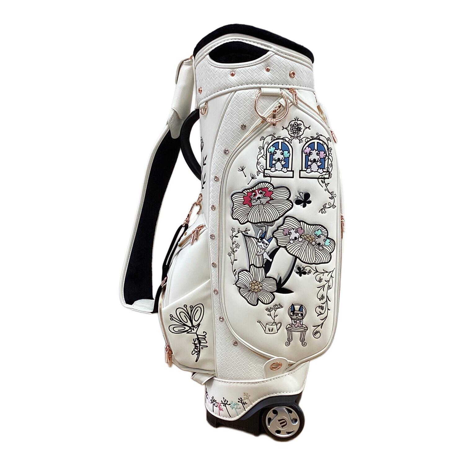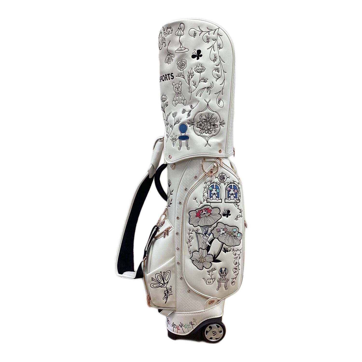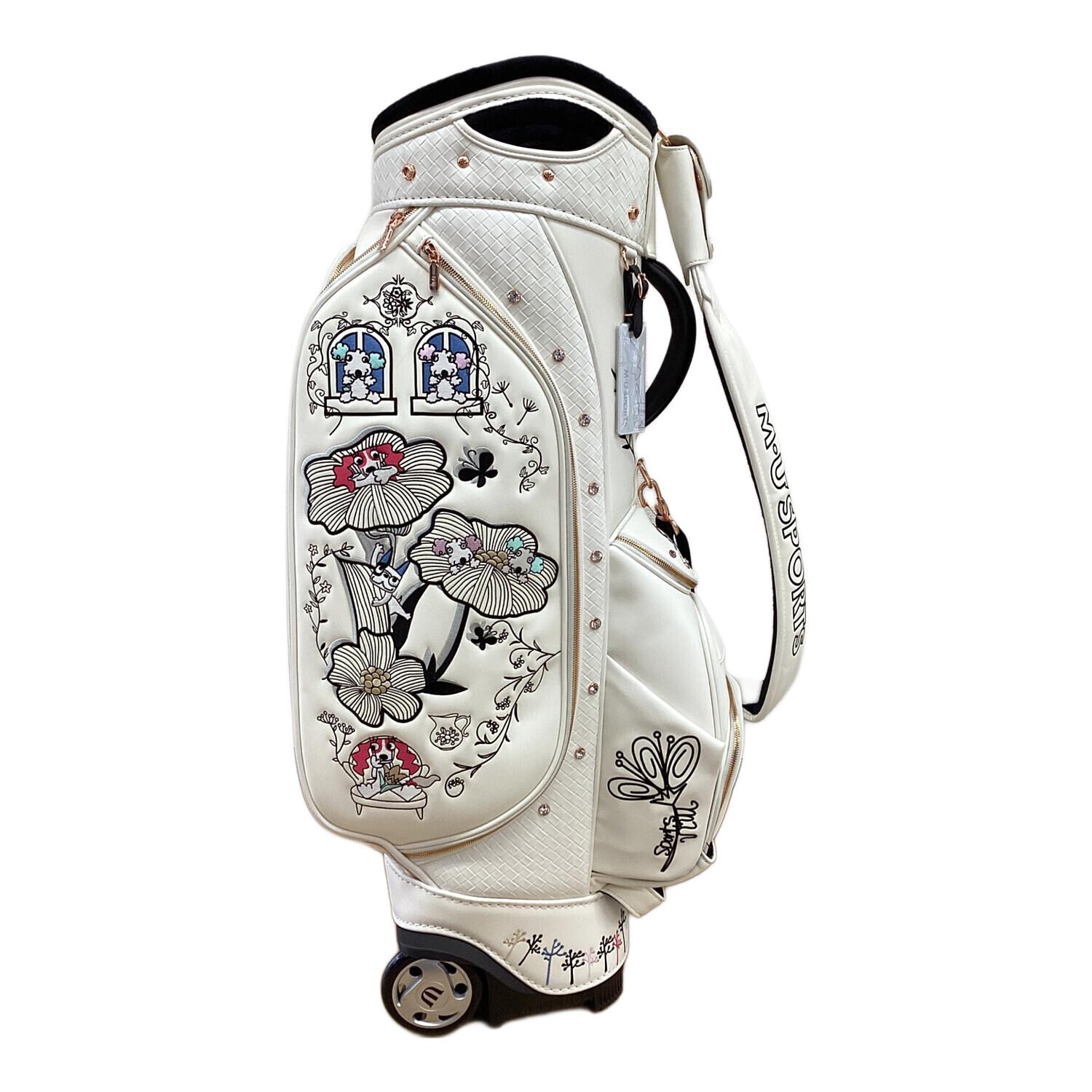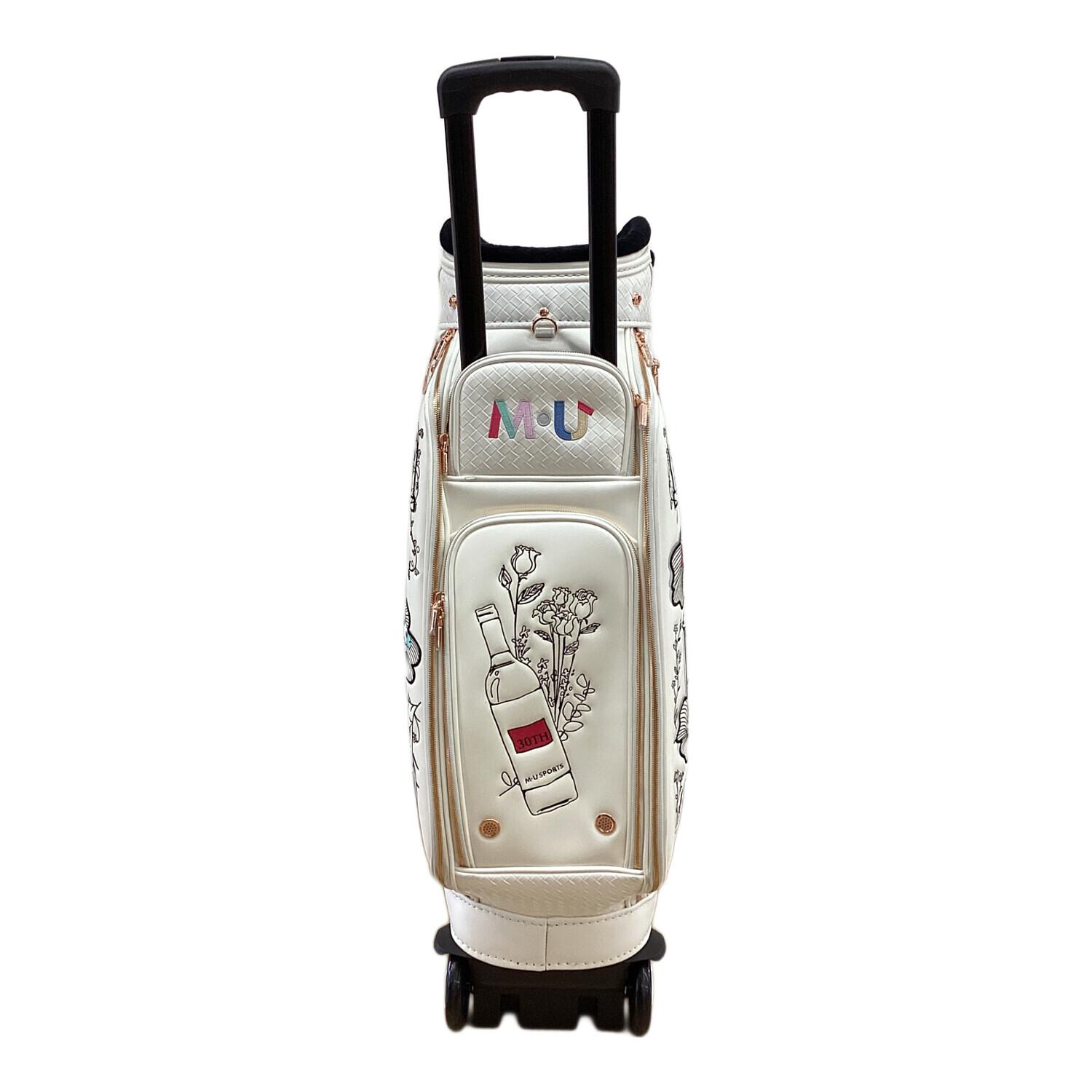 M U SPORTS (エムユースポーツ) キャディバッグ 30周年記念モデル キャスター付き ホワイト ボタニカルキャディバッグ