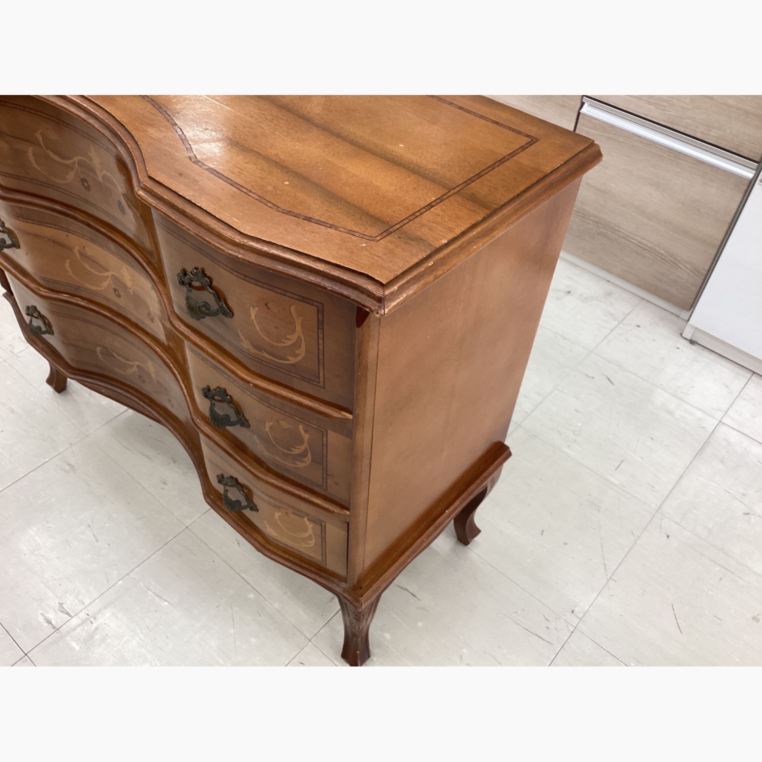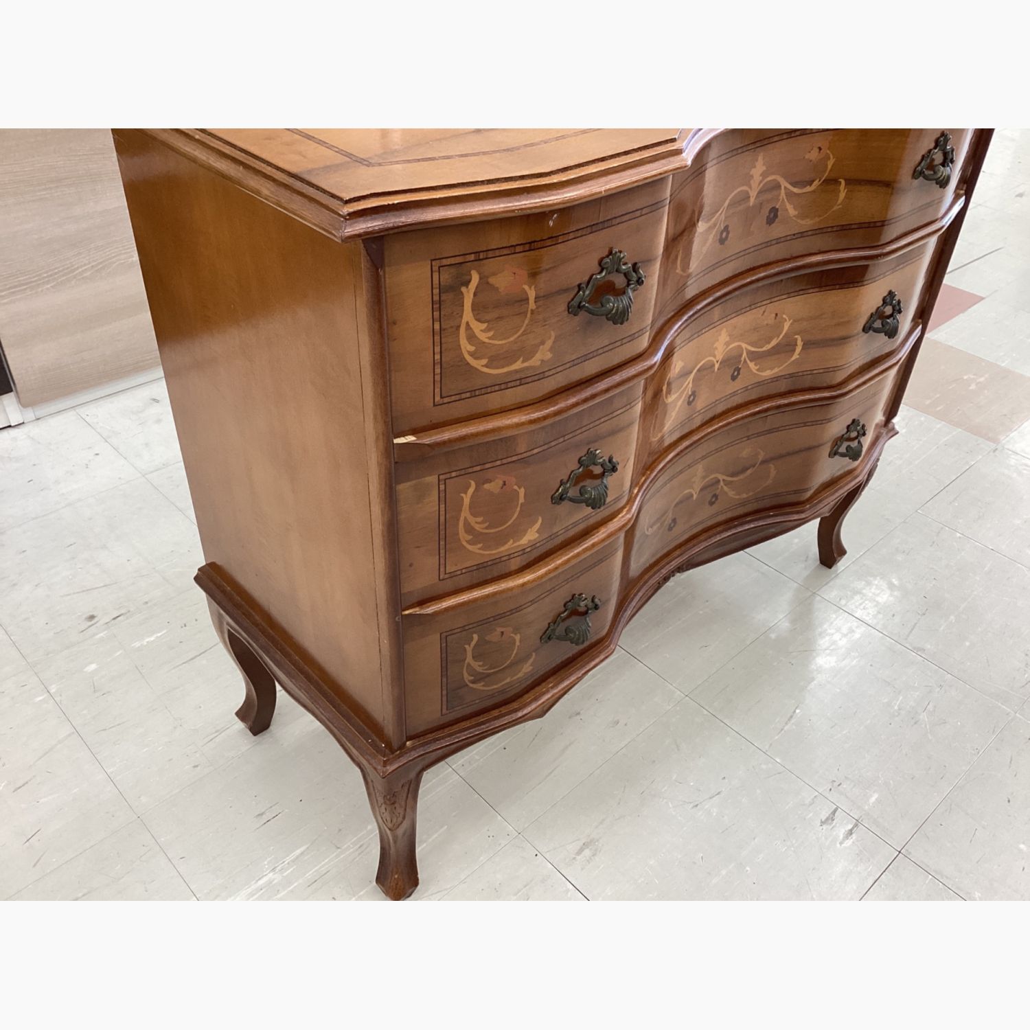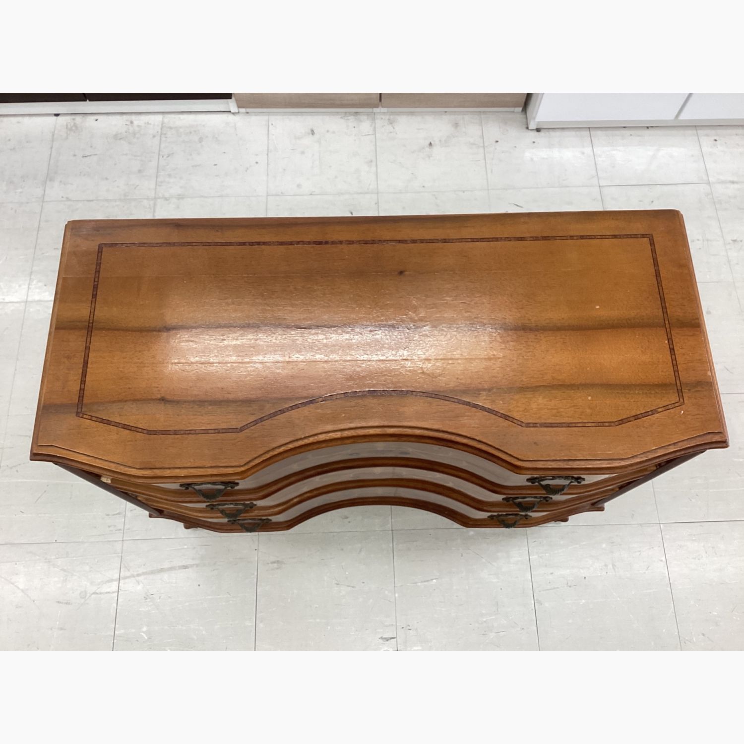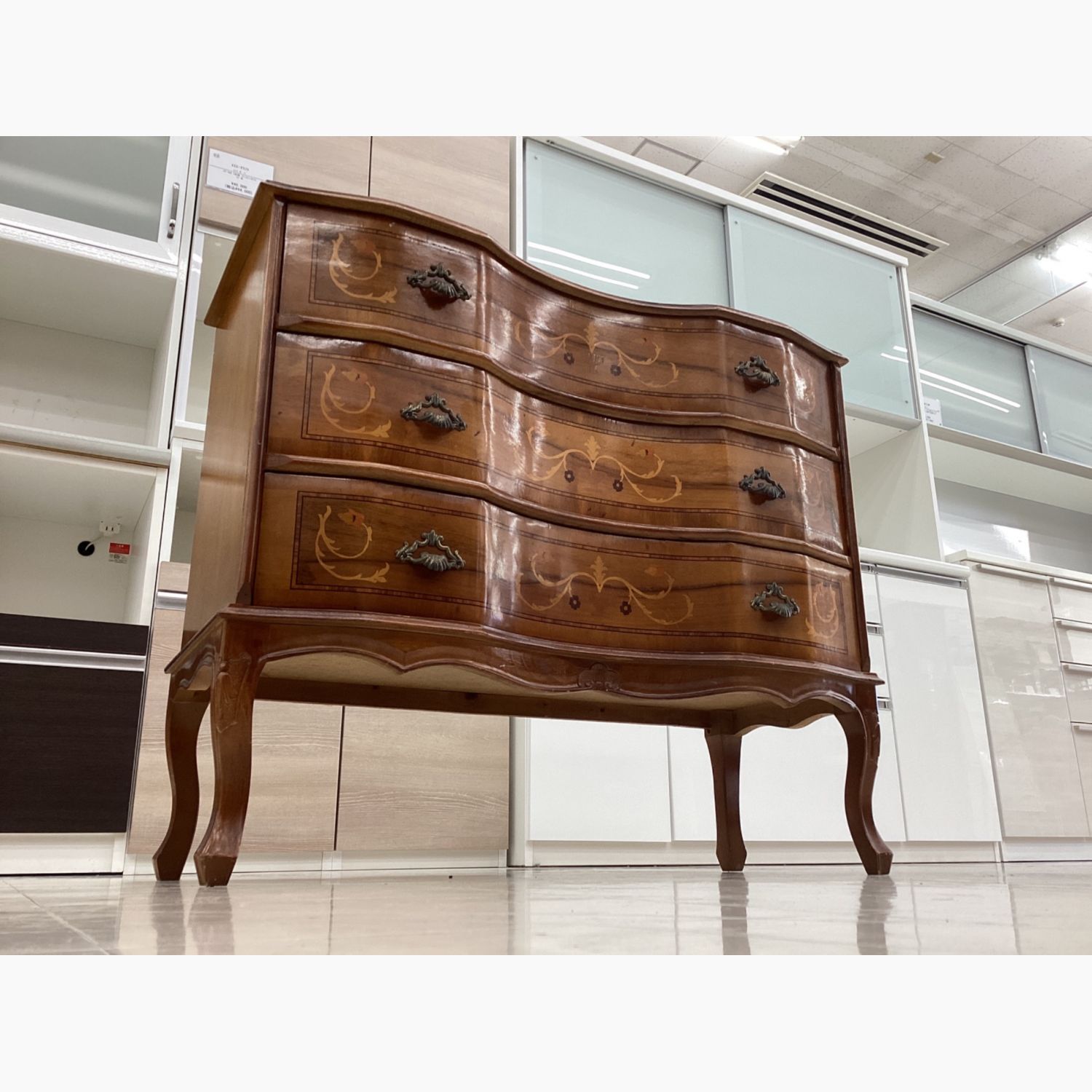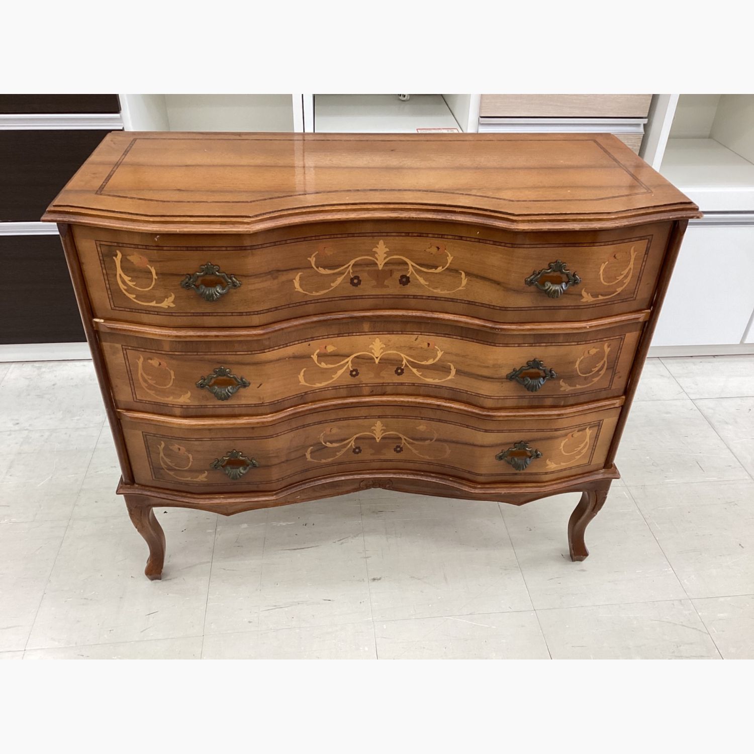 3段チェスト ブラウン 象嵌 猫脚