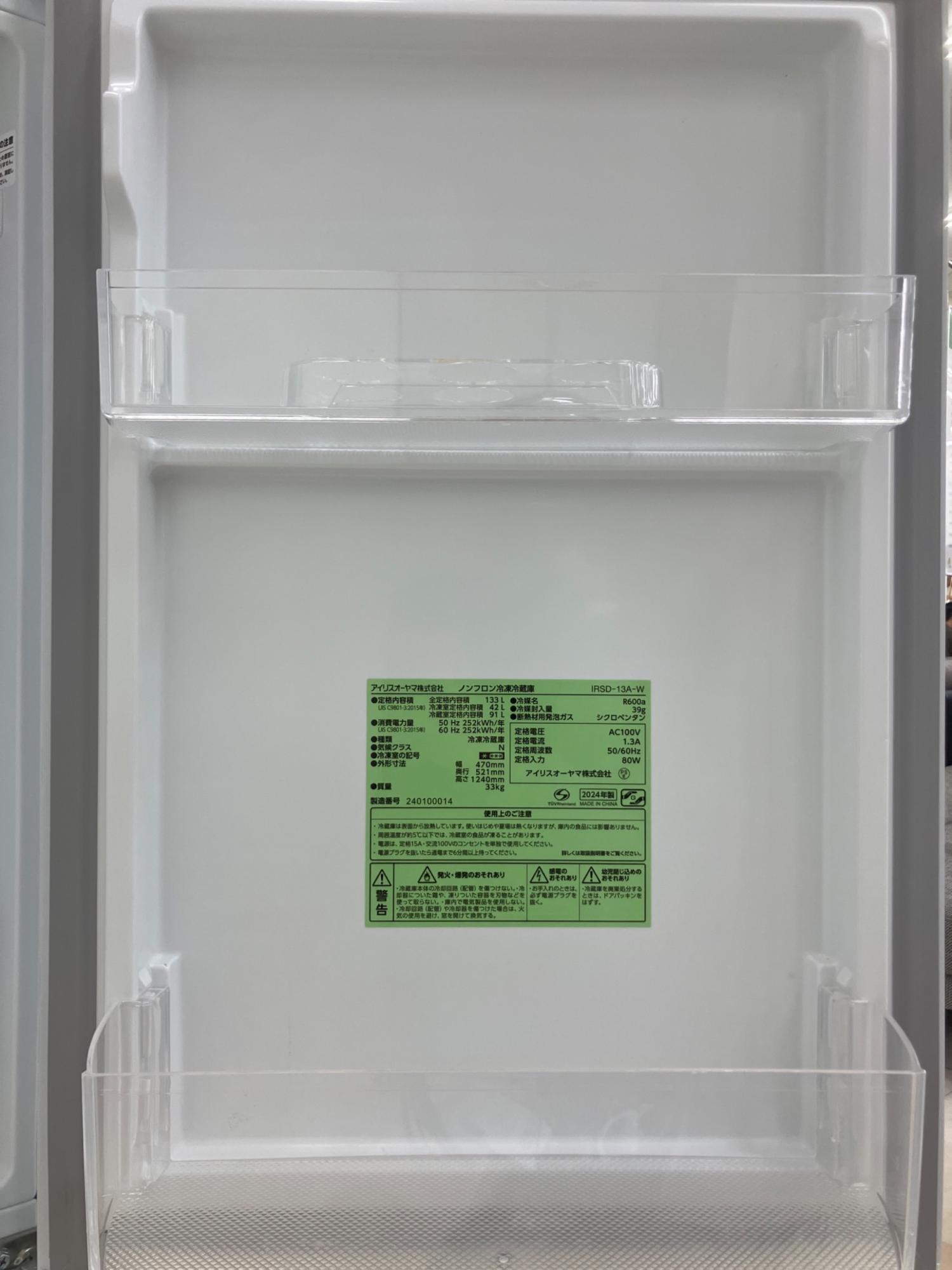 IRIS OHYAMA (アイリスオーヤマ) 2ドア冷蔵庫 IRSD-13A-W 2024年製 133L