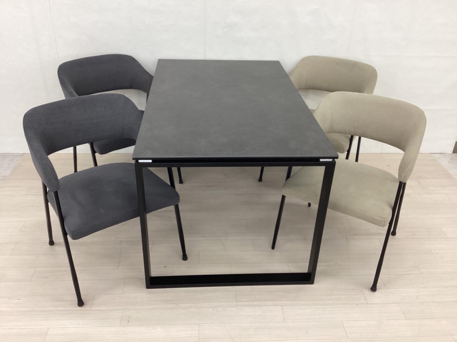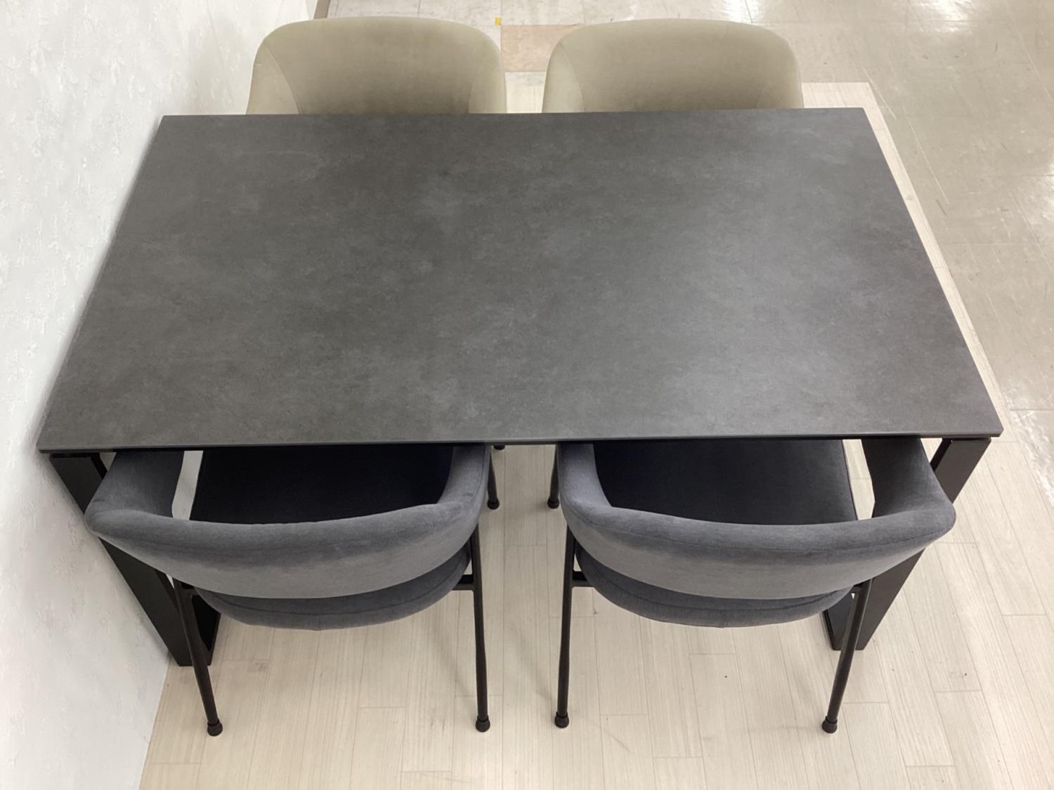 ニトリ ダイニング5点セット グレー×ホワイト 天板、脚スレ有
