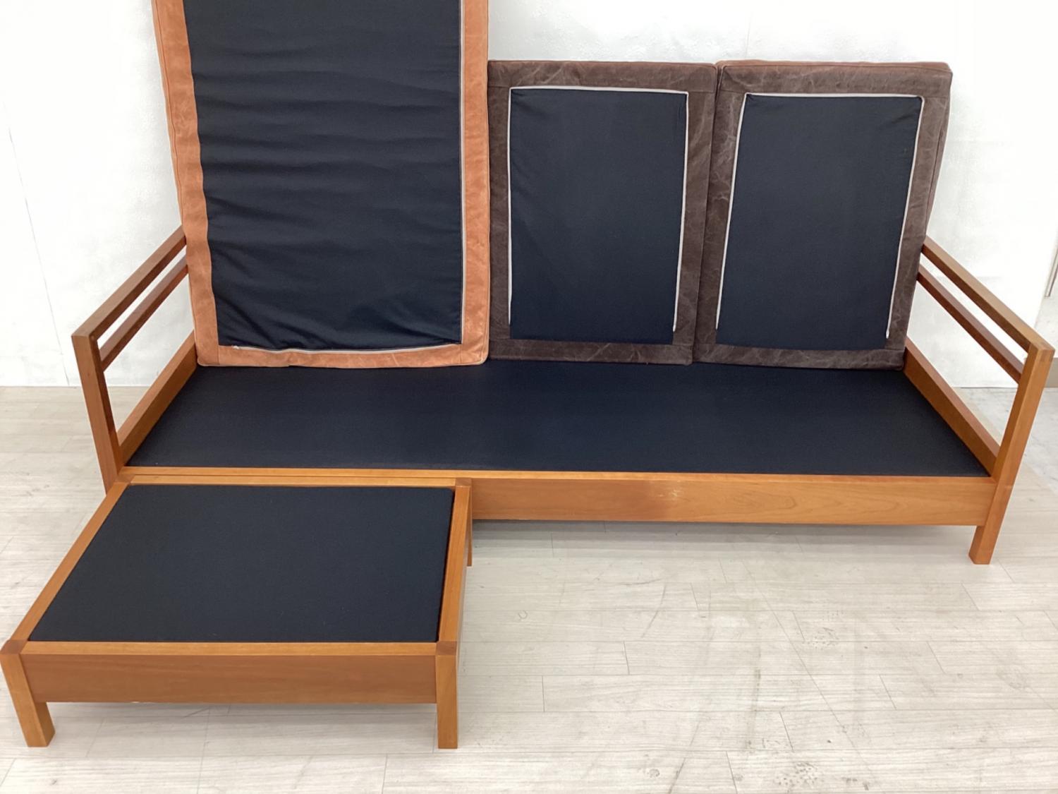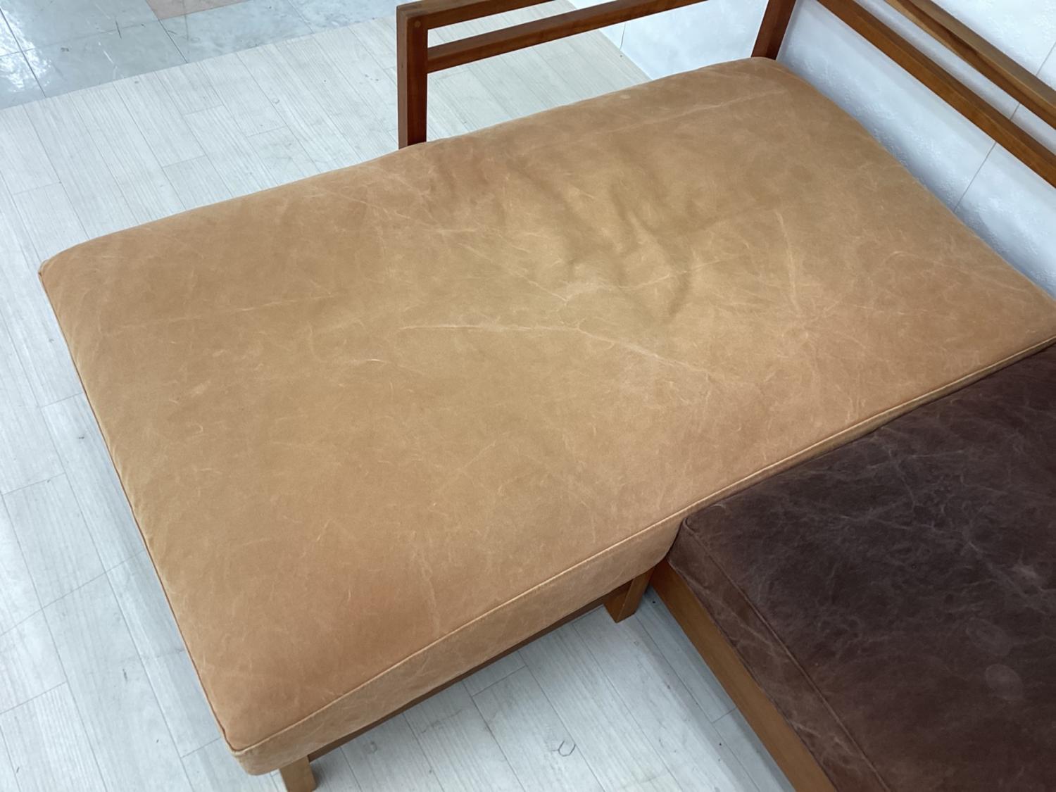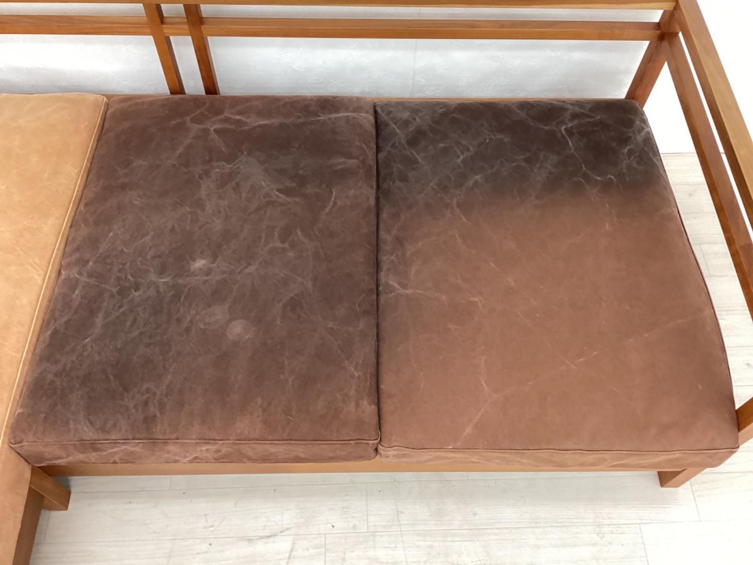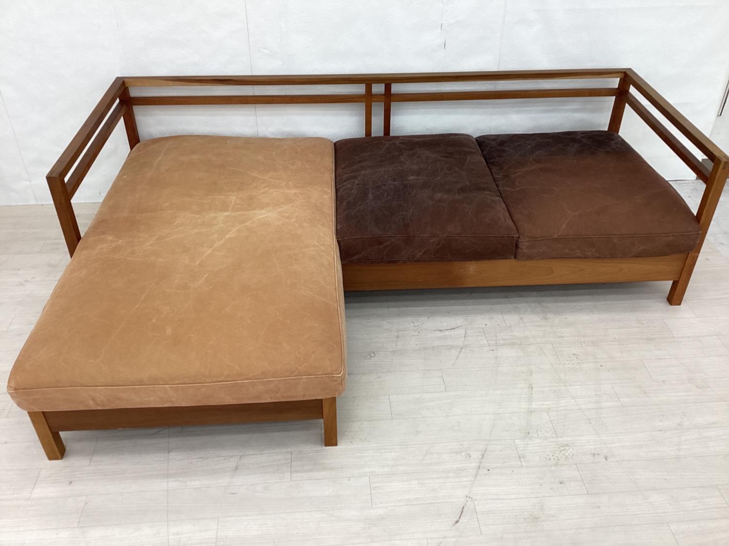 広松木工 (ヒロマツモッコウ) カウチソファー 幅:約196㎝ オレンジ×ブラウン RIPOSO 196