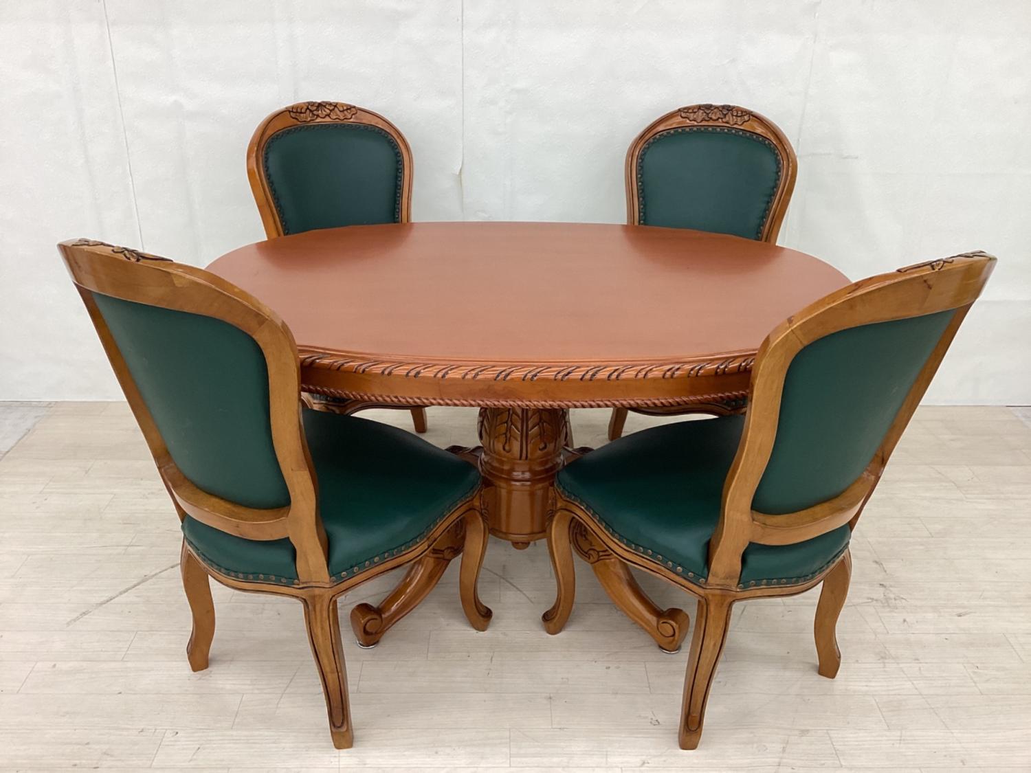 ダイニング5点セット 英国アンティーク調 ブラウン×グリーン