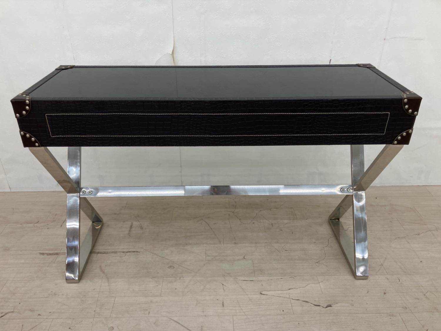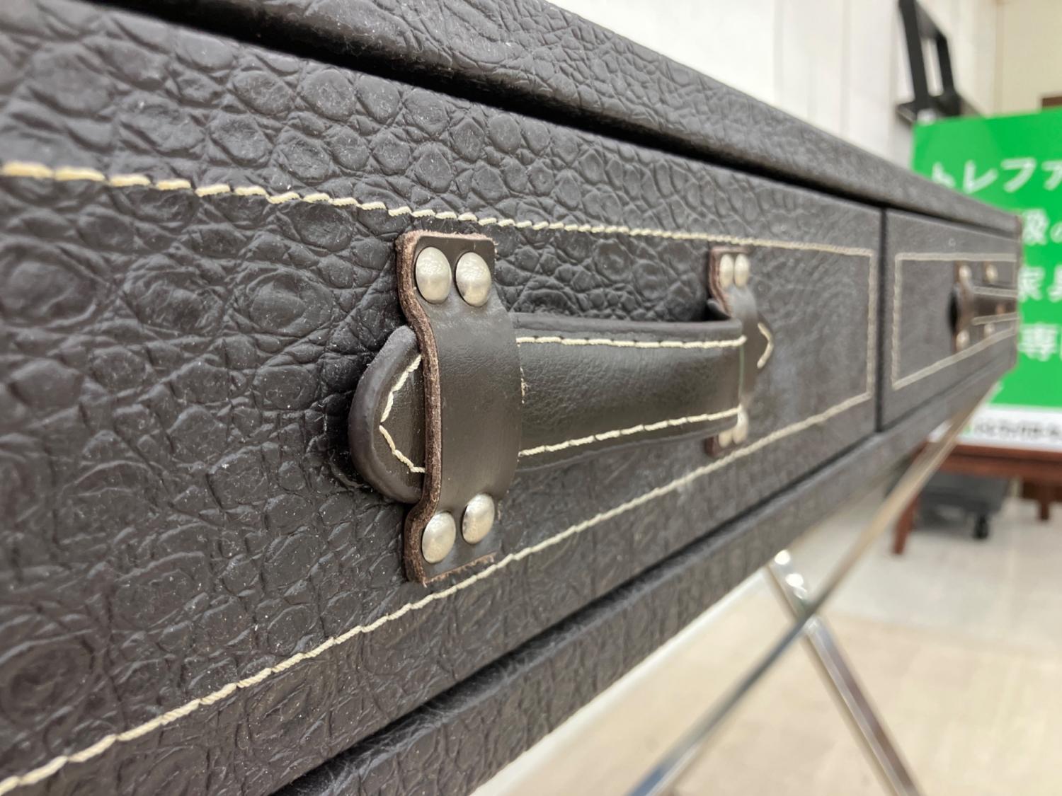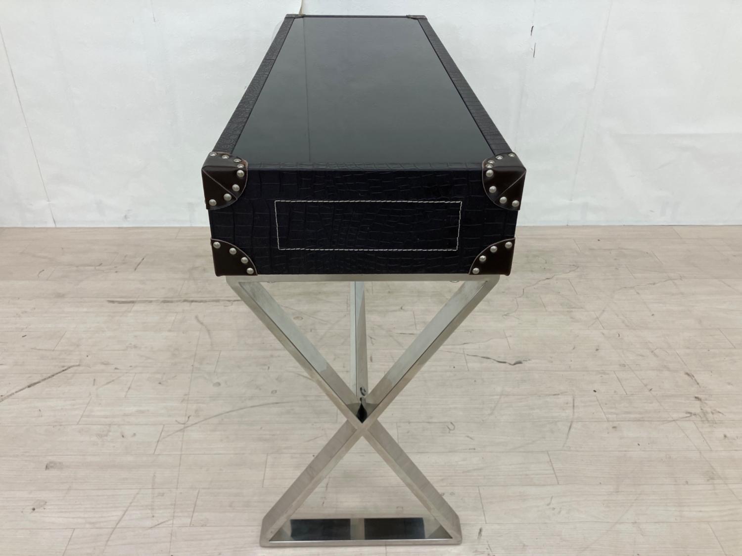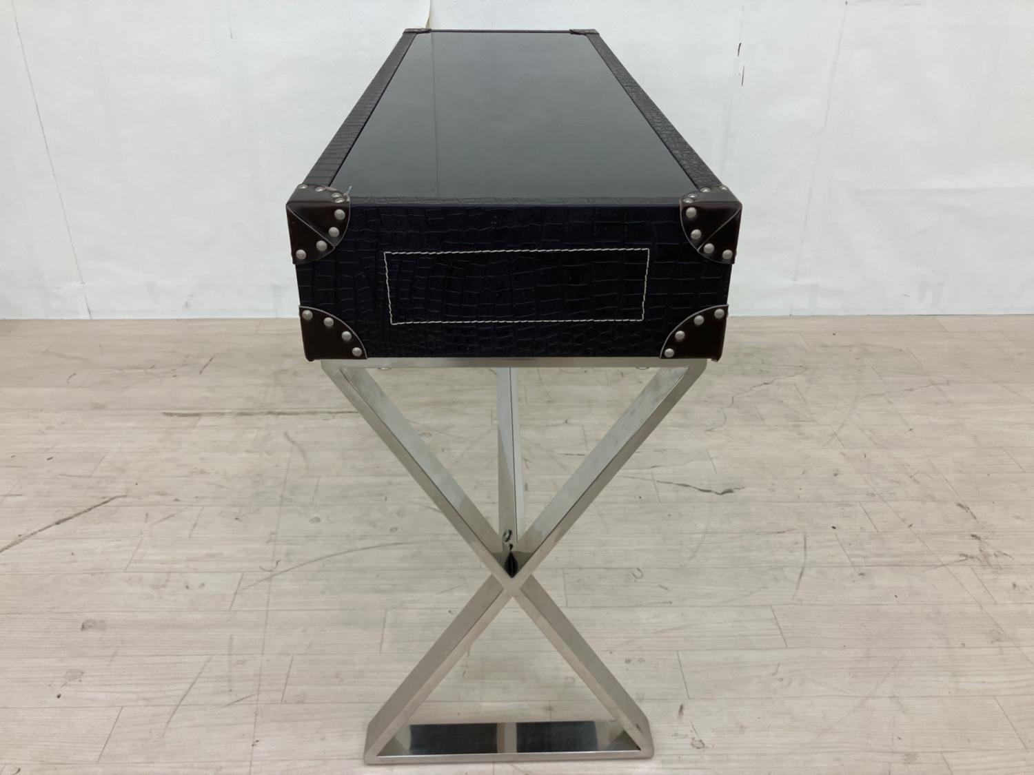 トランク風コンソールテーブル ブラック×シルバー
