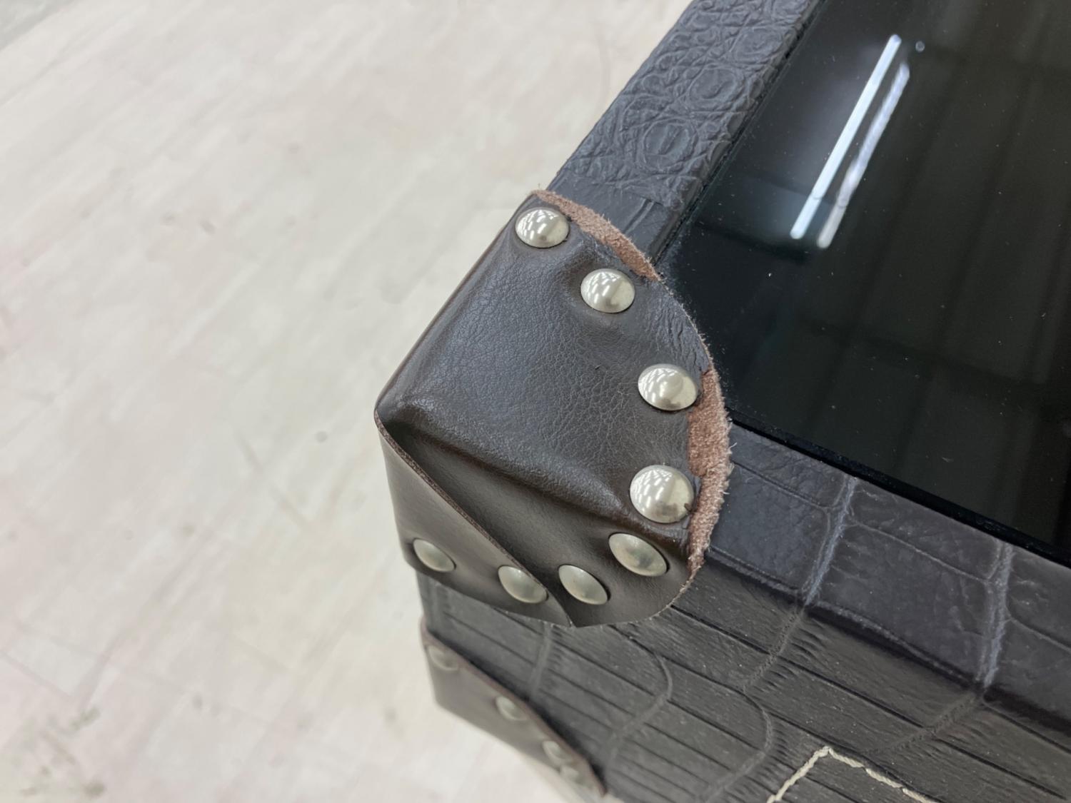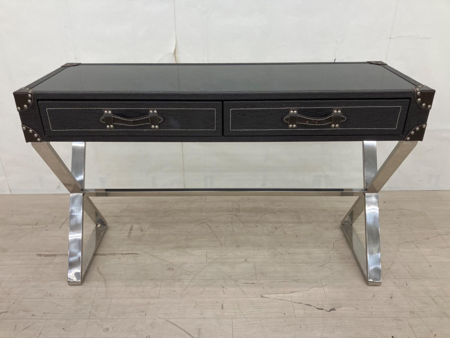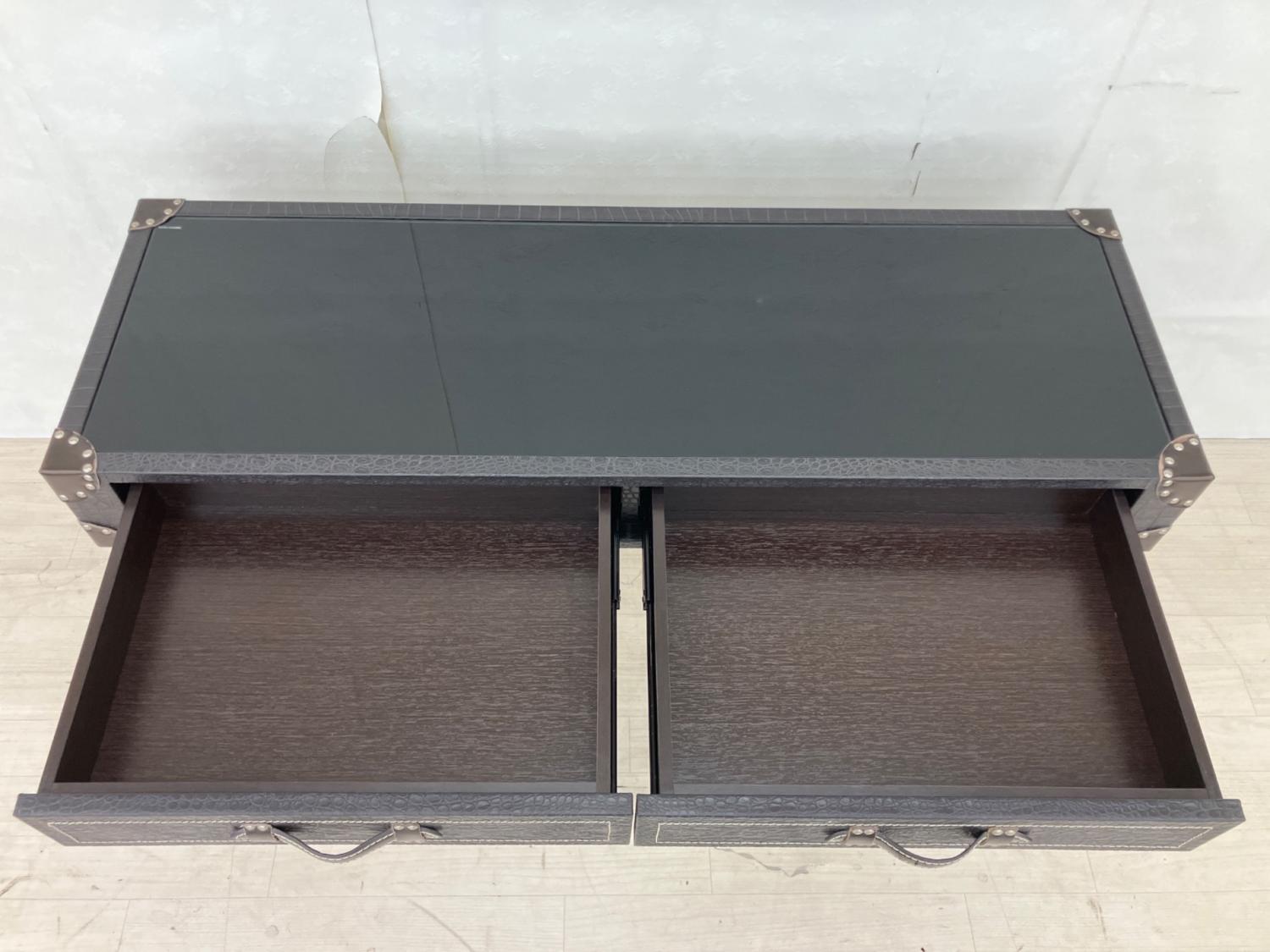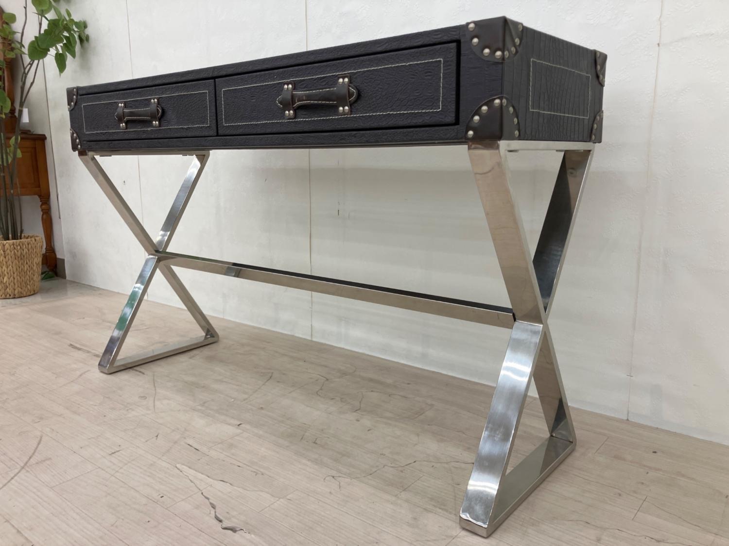 トランク風コンソールテーブル ブラック×シルバー