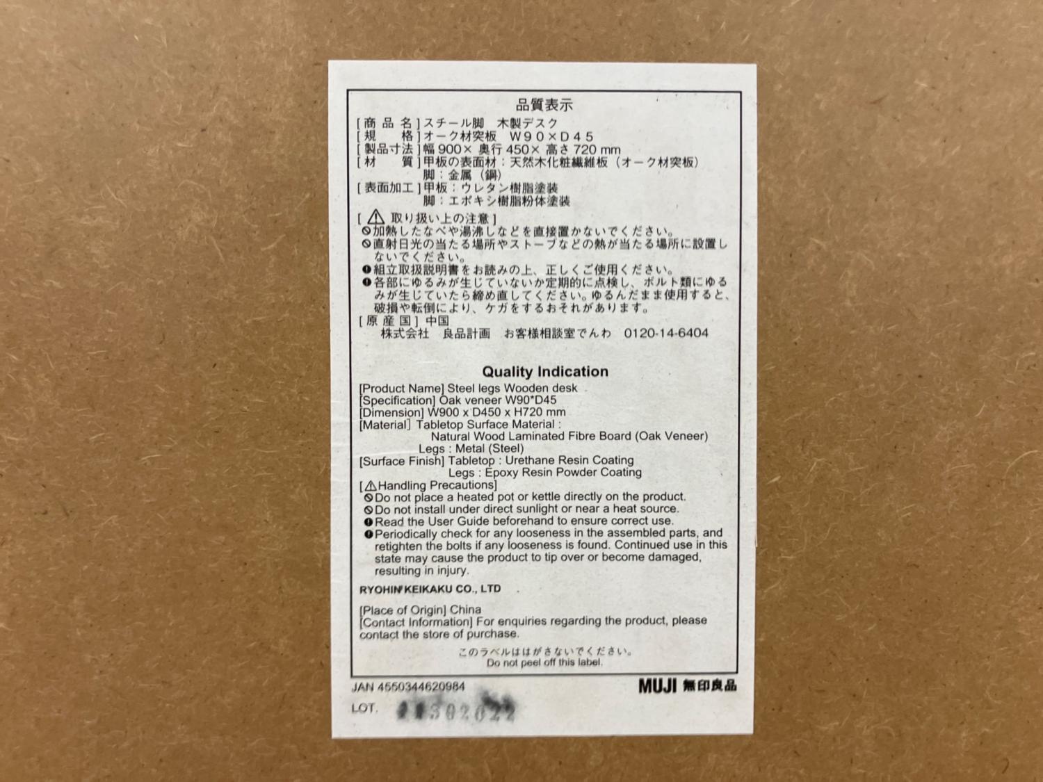無印良品 (ムジルシリョウヒン) デスク 幅:約90㎝ ナチュラル×ホワイト スチール脚 木製デスク(廃盤品)