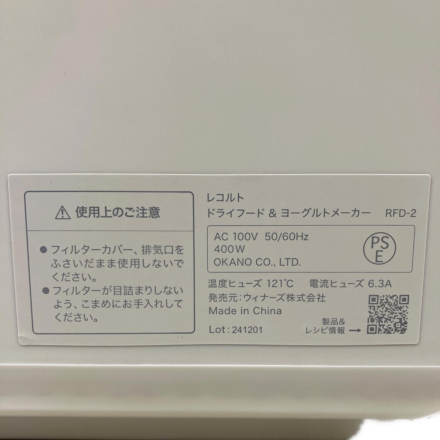 recolte (レコルト) ドライフード&ヨーグルトメーカー RFD-2