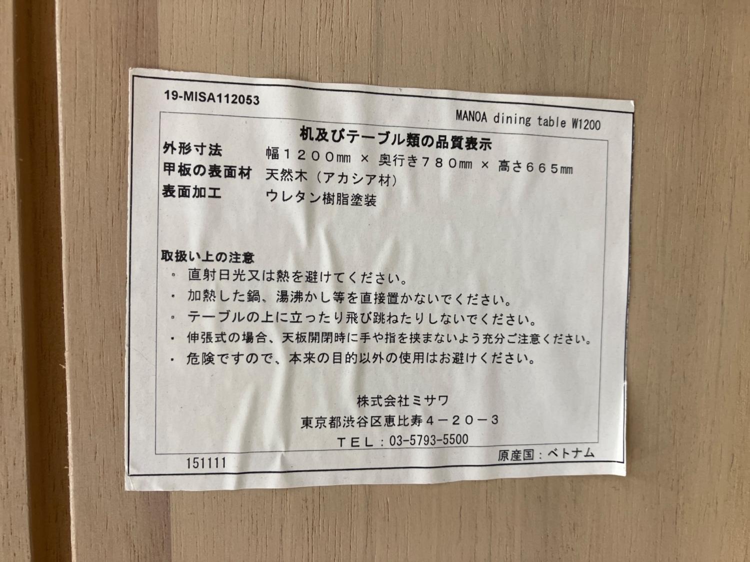 UNICO (ウニコ) ダイニングテーブル ホワイトウォッシュ MANOA